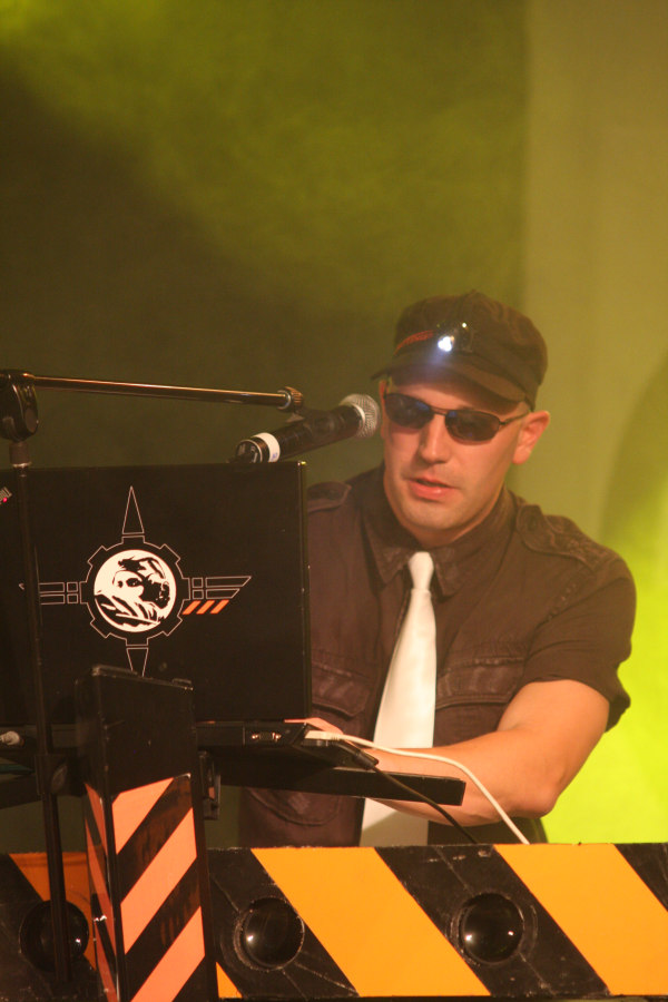 Outfit, so hätte diesen Sänger Sven verdient, denn seine Optik mit kurzer Turnhose, Trainingsjacke, Nerd-Brille und türkiser Stratocaster-Gitarre ist schwer geschmacklos. Geschmackvoller dagegen der Sound, den er mit Partnerin Claudia macht, denn die Mischung aus Electroclash, Synthiepop und Wave geht gut ins Ohr. Im Staatenhaus geht es mit intelligentem Electro der Extraklasse weiter, denn DESTROID, die Band um ex-Haujobb-Frontmann Daniel Myer ist an der Reihe. Während man letztes Jahr beim Blackfield Festival lediglich mit einem Computer antrat, sind dieses Jahr gleich zwei Herren für die synthetischen Klänge zuständig, dazu gibt es echte Drums. So wird die Show mit Songs wie "Silent World", "Judgement Throne" und dem The Sisters Of Mercy-Cover "Lucretia My Reflection" musikalisch zum ersten Highlight an diesem Nachmittag, auch dank Myers agiler Bühnenshow.