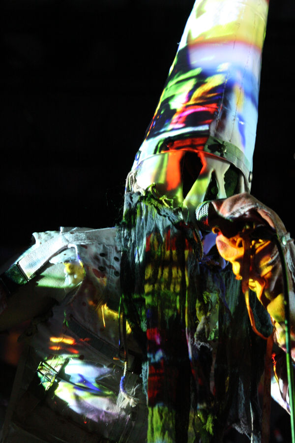 Spitzhut, verbundene Hände und ein ebenso verhüllter Körper sowie zahlreiche Blutflecken machen das Outfit aus und in Verbindung mit der Lichtinstallation sowie der Musik fühlt man sich wie in einem Horrorfilm oder einem bösen Alptraum. Die Singles "Addiction" und "Dogshit" folgen und im Verlauf des 80-minütigen Sets kommt man sich immer mehr wie im Rausch vor. In ohrenbetäubender Lautstärke werden "Tormentor", "Pro-Test" und "Ugli" ins Publikum gedroschen, das dann bei "Assimilate" endgültig austickt. Erst zu den Zugaben erscheint Ogre ohne Maske auf der Bühne und kündigt den Übersong "Worlock" an. Mit "Brap" und "Shore Lined Poison" wird das entrückte Publikum dann in die kühle Kölner Nacht entlassen. Was für ein wahnwitzig guter Auftritt - es erscheint unmöglich, da noch einen drauf zu setzen.