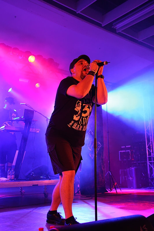 HaujobbNoch bessere Musik haben danach HAUJOBB zu bieten. Die legendäre IDM-Truppe um den charismatischen Sänger und Soundtüftler Daniel Myer hat sich vom Bühnenabschied, den man 2008 auf dem Amphi Festival beging, bekanntlich wieder verabschiedet und beweist, dass man elektronische Musik auf einem Festival tatsächlich auch selber machen kann und nicht auf eingespeicherte Patterns und Sequenzen zurückgreifen muss. Mit dem neuen Album "New World March" im Gepäck ist man also wieder voll dabei und legt einen energischen Auftritt auf die Bretter. Zumindest bei den ersten drei Songs, denn auf der Hauptbühne sind als nächstes EISBRECHER an der Reihe, die man nur ungern verpasst.