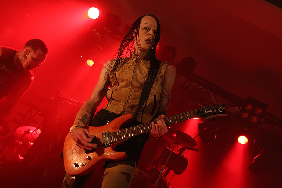 Sei's drum, an ihren Instrumenten sind Mädels jedenfalls talentiert und fiedeln sich gekonnt durch ihre Interpretationen bekannter Hits aus Pop und Rock. Das Publikum lauscht andächtig, ich jedoch habe Hummeln im Hintern und verlasse das Theater nach ein paar Songs wieder, zumal mir eine liebe Bekannte über den Weg läuft und somit erst einmal die Pflege von Sozialkontakten im Vordergrund steht. So werden THE CRÜXSHADOWS und MONO INC. lediglich mit einem Ohr wahrgenommen, was jedoch völlig ausreicht.