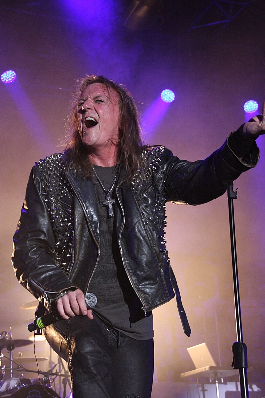 Und zwar mit einer kleinen Sensation, denn es dürfte ein paar Jährchen her sein, dass der ehemalige HEAVENS GATE-Gitarrist und langjährige AVANTASIA-Hofproduzent Sascha Paeth mit einem Leadsänger namens Thomas Rettke auf der Bühne stand. Der ehemalige HEAVENS GATE-Fronter steht nämlich nicht nur als Backgroundsänger neben Amanda Somerville, sondern übernimmt bei einigen Songs auch den Hauptgesang. Wie dem brettharten "Scales Of Justice", das im Original von Ripper Owens gesungen wird und bei dem Rettke zeigt, dass er stimmlich auch 2013 noch so einiges drauf hat. Danach wird der Knüppel aber wieder eingesteckt und die erste Ballade des Abends wird ausgepackt. Wie auch auf dem Album wird "What's Left Of Me" von MR. BIG-Frontmann Eric Martin angestimmt. Der wird seinem Ruf als ausgezeichneter Sänger jedoch nicht auf Anhieb gerecht, denn von allen bisherigen Frontleuten kann er zunächst am wenigsten überzeugen, beim flottmelodischen "Promised Land" von der "Angel Of Babylon"-Scheibe kommt aber auch er besser in Form. Oder ist sein Mikrofon nicht ordentlich eingestellt? Man weiß es nicht. Etwas überraschend entpuppt sich Martin aber auch als kleiner Zotenreißer und versucht, das Publikum mit seinen Witzchen bei Laune zu halten. Danach hat Frau Somerville ihren ersten großen Auftritt und zelebriert mit Tobi das wunderbar poppige "Sleepwalking", bevor Ronnie Atkins im superben "The Scarecrow" zeigt, dass er ein guter, aber nicht perfekter Ersatz für Jorn Lande ist, der diese Tour nicht mitfahren konnte. (ASZ)
