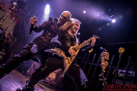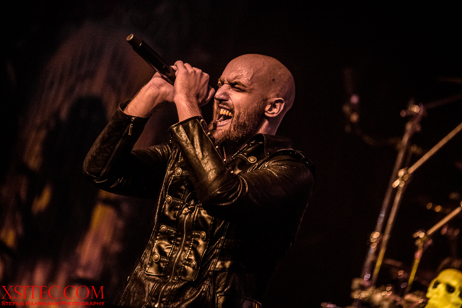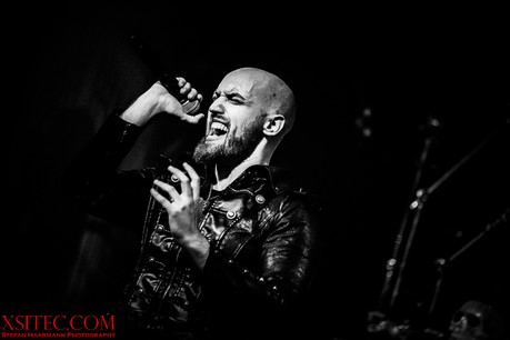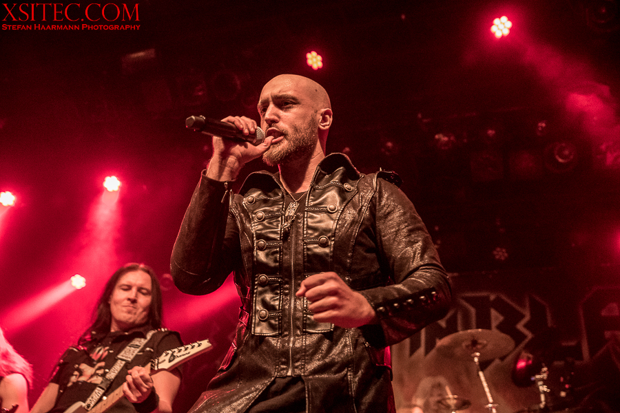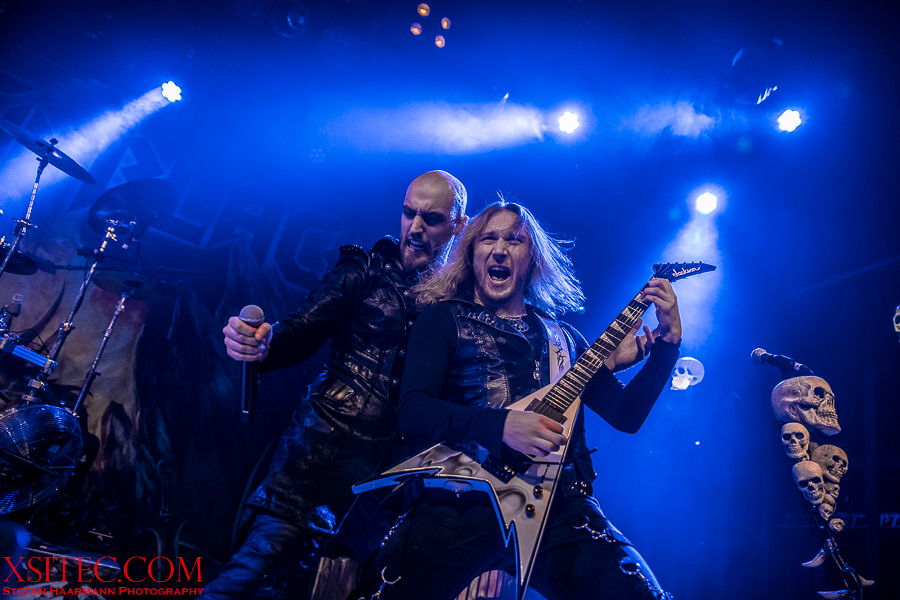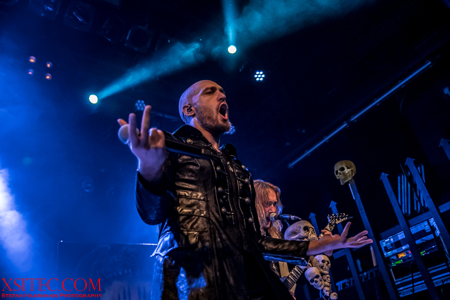 Fleißige Helfer richten nun die Bühne für Kabanen und Co. her, die erst wenige Wochen zuvor ihr neues Album in die Läden gebracht haben. Es werden allerlei Plastikschädel drapiert und auch die Mikrofonständer für Kabanen und Bassmann Máté Molnar sind so verziert. Nachdem die Illumination eines Teils der Schädel angeknipst ist, kann es losgehen. Die Band kommt zum Intro von Konserve aus dem Schatten heraus, eröffnet das Feuerwerk mit „Cry Out For A Hero“ vom aktuellen Album und demonstriert von der ersten Sekunde an, was es heißt, im Jahr 2019, an einem Donnerstag vor ausverkauftem Haus spielen zu dürfen. Die Fans werden mit einer Energie überzogen, die sofort überspringt. Yannis Papadopulos macht einen grandiosen Job am Mikrofon und trällert die extrem hohen Gesangslinien routiniert und mitreißend in die Menge, die den 80er Retro-Pop-Metal abfeiert.