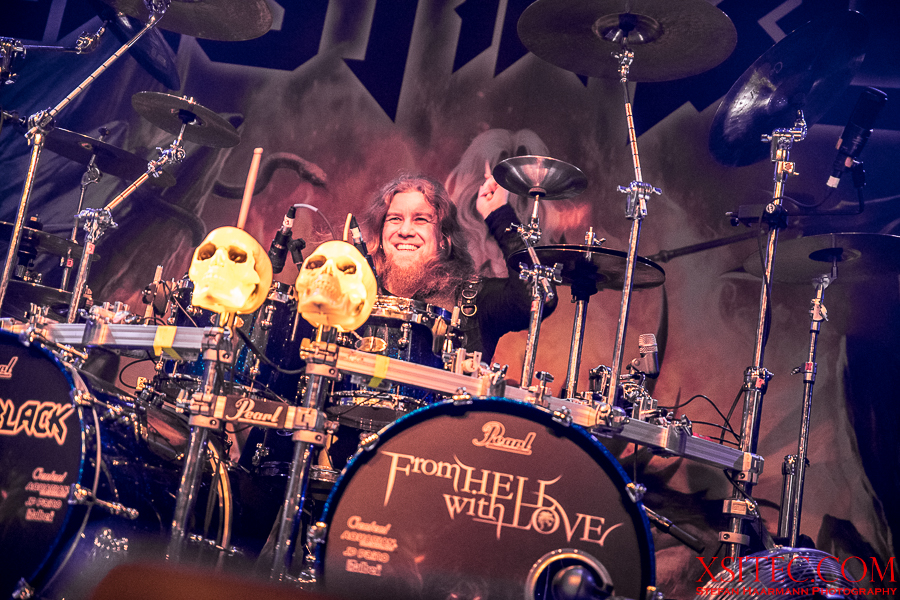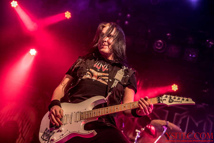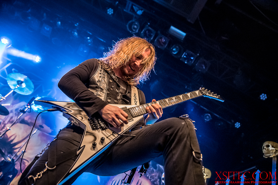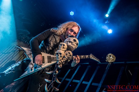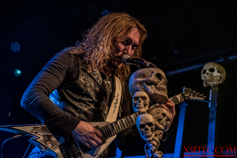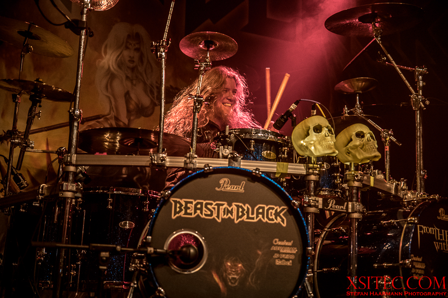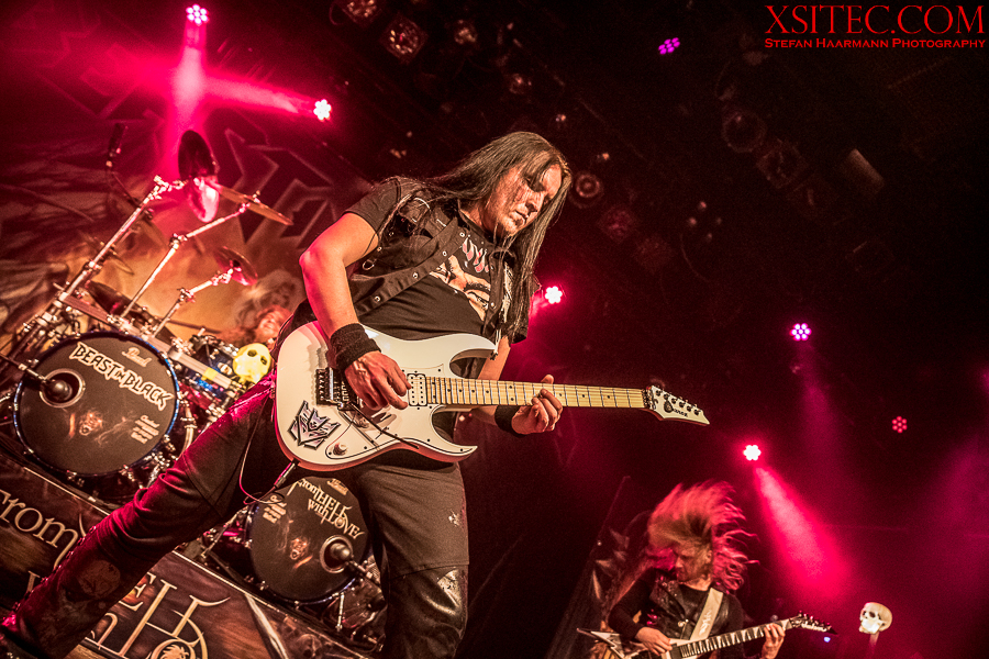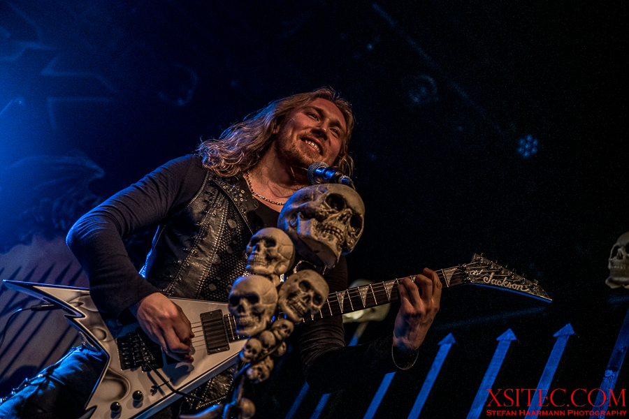 Kasperi Heikkinen, der den Job an den Saiten bei U.D.O. für das Engagement bei BEAST IN BLACK sausen ließ, hat neben virtuosen Soli noch Zeit für Späßchen mit den Fotografen und demonstriert, wie man mit diversen Grimassen für Unterhaltung sorgen kann. Mastermind Kabanen lässt sich indessen nicht lumpen und schreddert ein Solo nach dem anderen aus dem Ärmel.