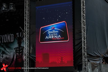 BEYOND THE BLACK haben sich mit ihrem neuen Album „HØRIZØNS“ angesagt und die Show in Oberhausen ist neben Stuttgart am Vortag die einzige Möglichkeit der Band, das neue Material unter Livebedingungen zu präsentieren. Entsprechend herrscht knisternde Spannung in der Arena. Fans aus dem gesamten Bundesgebiet sind versammelt, um die Autoshow zu sehen. Das Konzert wird per UKW-Sender, der hinter der Bühne steht, in die Autoradios der Zuschauer übertragen, so dass eine große PA überflüssig ist.