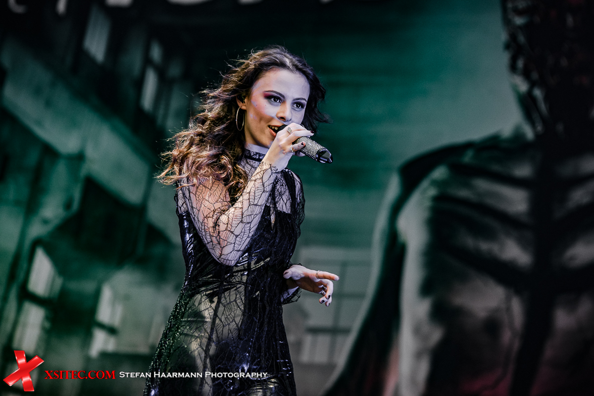 Danach geht es zusammen mit Gitarrist Chris Hermsdörfer ins Cabrio zum Akustik-Teil der Show. „Through The Mirror“, „Misery“ sowie „Songs Of Love And Death“ werden zwischen den Reihen der Zuschauer gespielt und während der Rest der Band sich Backstage erfrischen kann, machen Haben und Hermsdörfer auch ohne jedes Backup eine gute Figur. Zurück auf der Bühne geht es mit „Written In Blood“ wieder metallischer zur Sache, während „Lost In Forever“ vom gleichnamigen 2016 Werk ebenfalls opulent zelebriert wird.