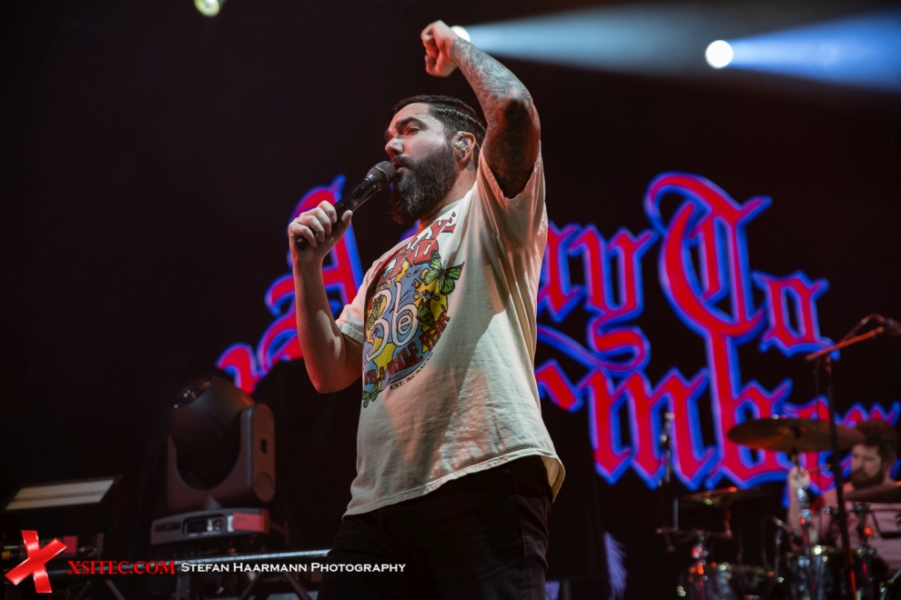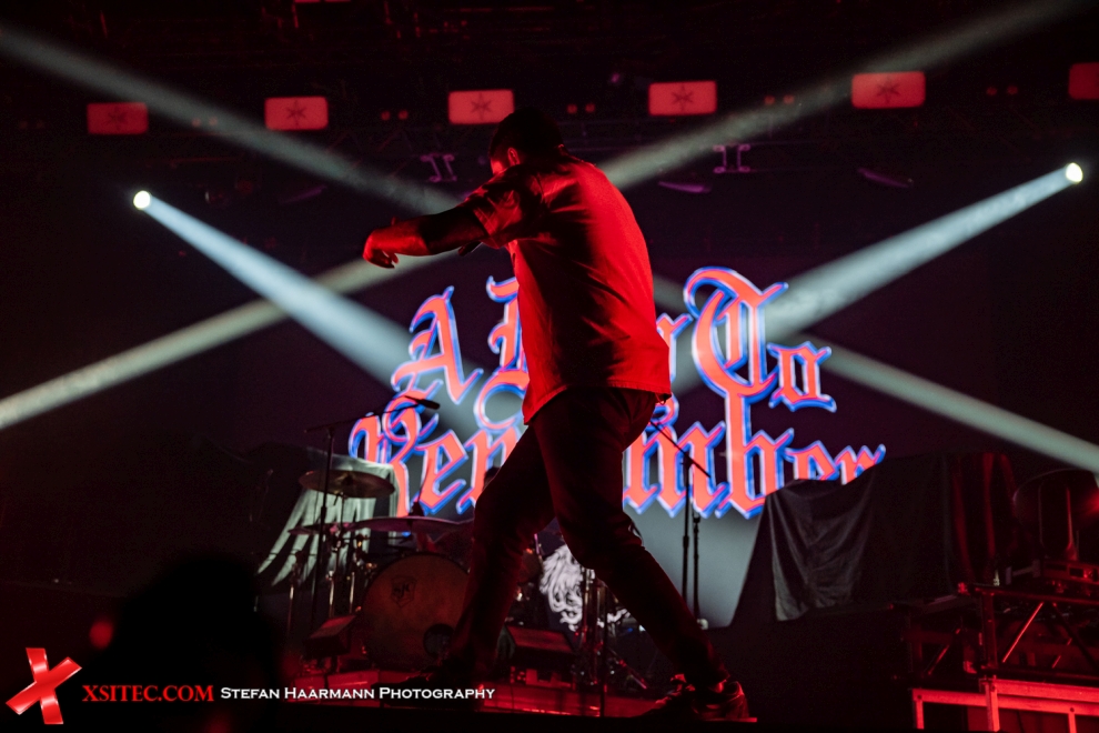 Nach diesen beiden Einheizern, die ihre Aufgabe mit Bravour meistern konnten, gibt es ein Wiedersehen mit A DAY TO REMEMBER, die im vergangenen Jahr ihr eigene Headliner-Tour nicht komplett durchziehen konnten und hier umso mehr motiviert erscheinen. Krachende Riff zu teilweise zuckersüßen Melodien sind seit Bestehen das Rezept der Band aus Florida. Frontmann Jeremy McKinnon in weißem THIRD EYE BLIND-Shirt setzt von der ersten Sekunde an alles daran, die Halle in ein tosendes Inferno zu verwandeln, was in bemerkenswerter Art und Weise gelingt.