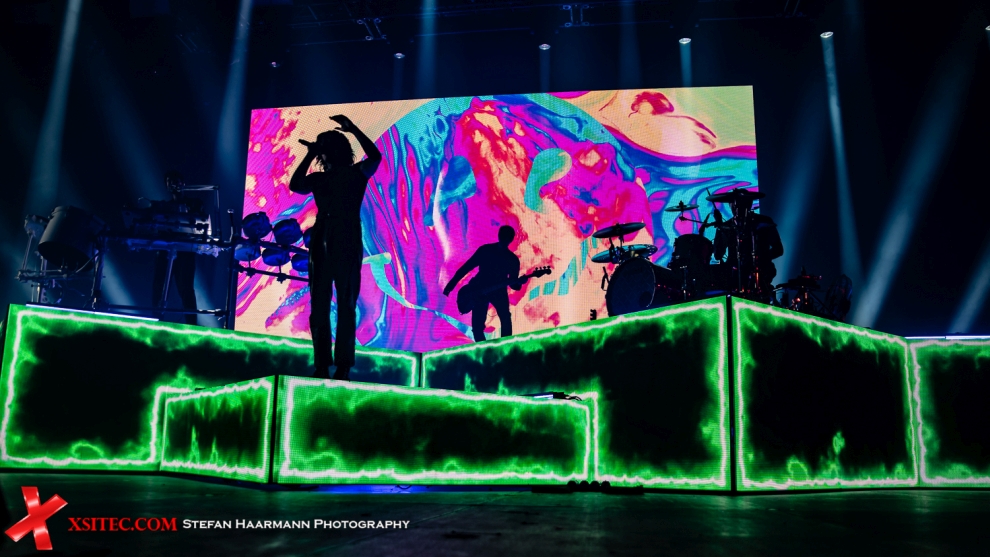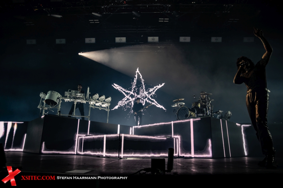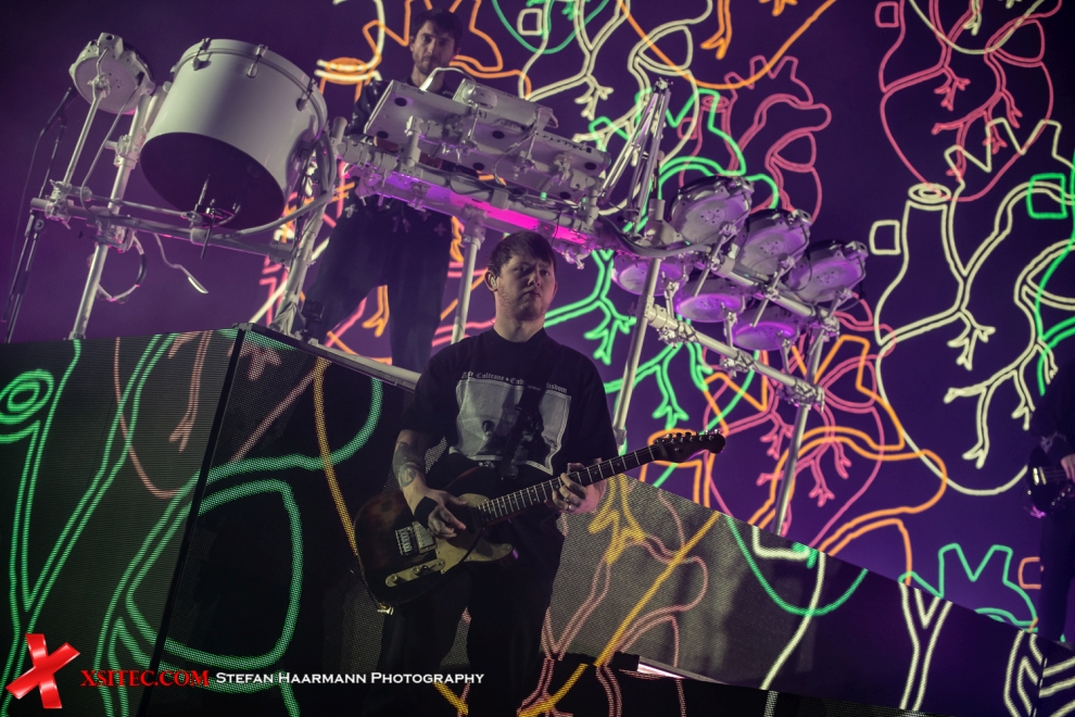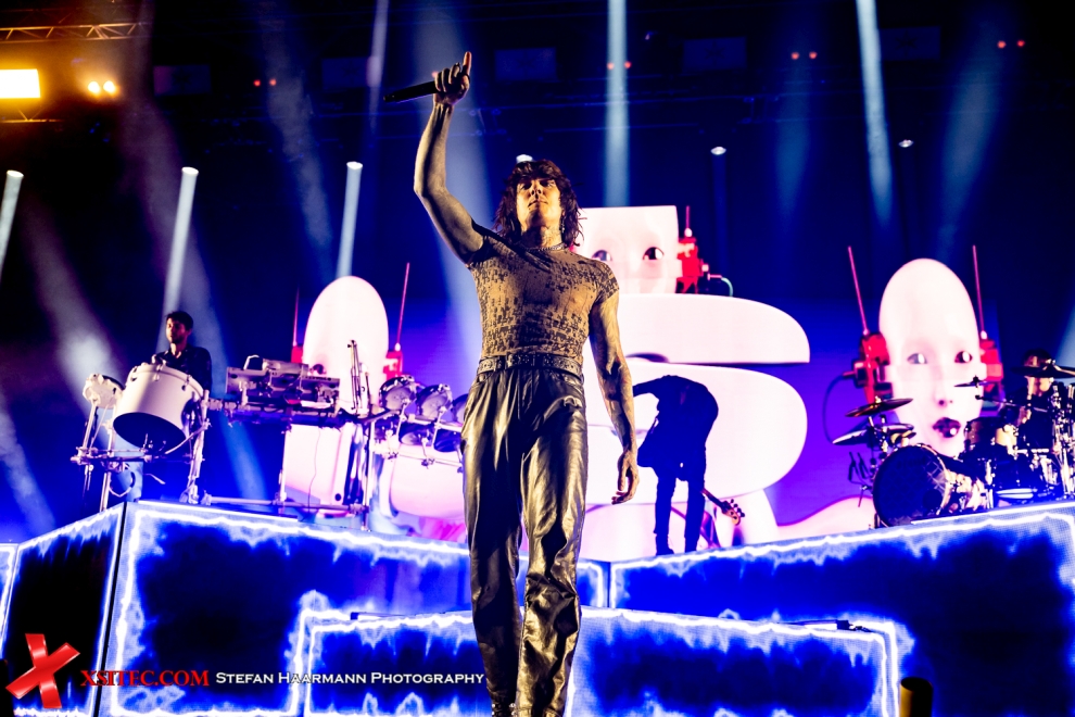 Die folgende Umbaupause nimmt ein wenig mehr Zeit als zuvor in Anspruch, was aufgrund des ausladenden Equipment des Hauptacts BRING ME THE HORIZON zwangsläufig erscheint. Neben einer Schlagzeug-Schießbude wird ein mächtiges Keyboard Ensemble aufgebaut, dazwischen steht eine mächtige LED-Wall, die in der Folge jedes nur erdenkliche, visuelle Highlight bietet, vom Intro angefangen („Scanning for moshpits“), bis hin zu animierten Herzen, Computercode und sonstigen Gimmiks. Großes Kino. Frontmann Oli Sykes sorgt mit seiner Präsenz dafür, dass die optischen Highlights im Hintergrund nur Beiwerk bleiben und zieht sofort die Blicke der Fans auf sich. Wie energiegeladen die Band aus Sheffield aus der Garderobe kommt, kann man mit Blick auf die Livebilder sicher ahnen. Hier gibt es keine Sekunde Stillstand, hier wird gesprungen und mit einer solchen Vehemenz abgeliefert, die man so nur selten erlebt.