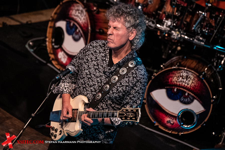 Als Peter Bursch und seine Band wieder die Bühne betreten, brandet sofort Jubel auf, denn auch der zweite Teil der Setlist ist gespickt mit hochkarätigem Material. Nach „Pajaro“ gibt es mit „Sofa-Rock“ ein weiteres Highlight des aktuellen Longplayers, der mit indianisch anmutenden Klängen wiederum Register der Weltmusik zieht, die hier in Duisburg lang anhaltend gefeiert werden, auch weil Frontlady Stella erneut mit Tanzeinlagen glänzt. „Fall Into The Sky“ vom „Indian Camel“-Album imponiert durch laid-back angelegtes Arrangement und schwebend-flirrende Keyboardklänge, die Tom Plötzer immer wieder virtuos einstreut. „Sole Ruler“, ein Blues-Rocker der Extraklasse und „Black Is Your Color“, der an typischen ZZ-TOP Boogie erinnert, liefern weitere Highlights, beide ebenfalls vom neuen Album, wobei insbesondere letzterer vom Publikum euphorisch gefeiert wird. Ein ganz starkes Ding.