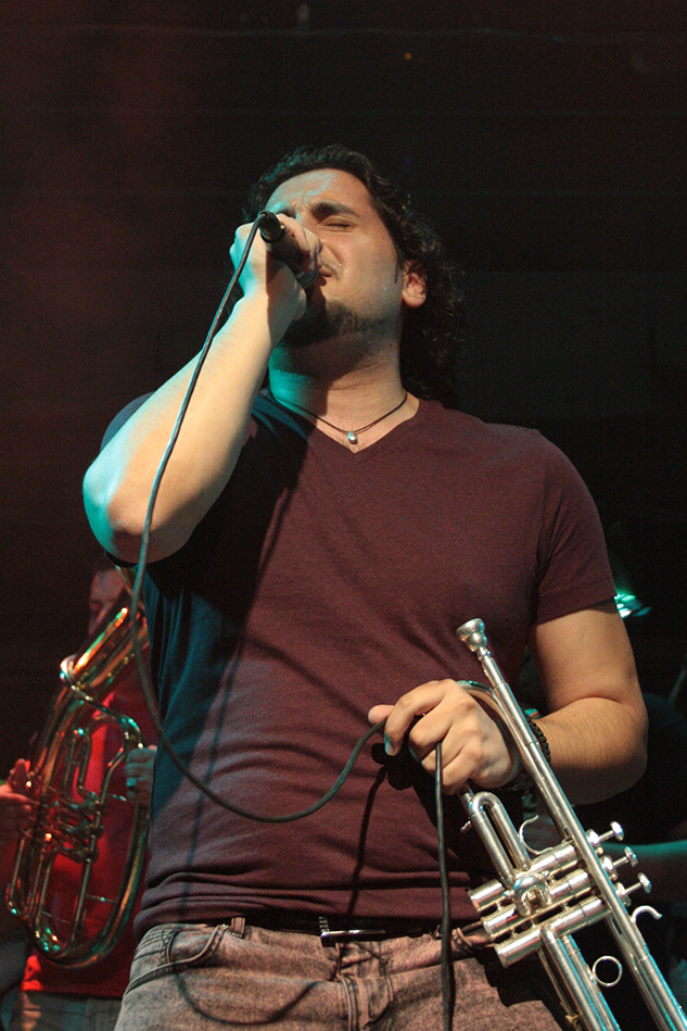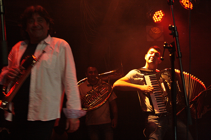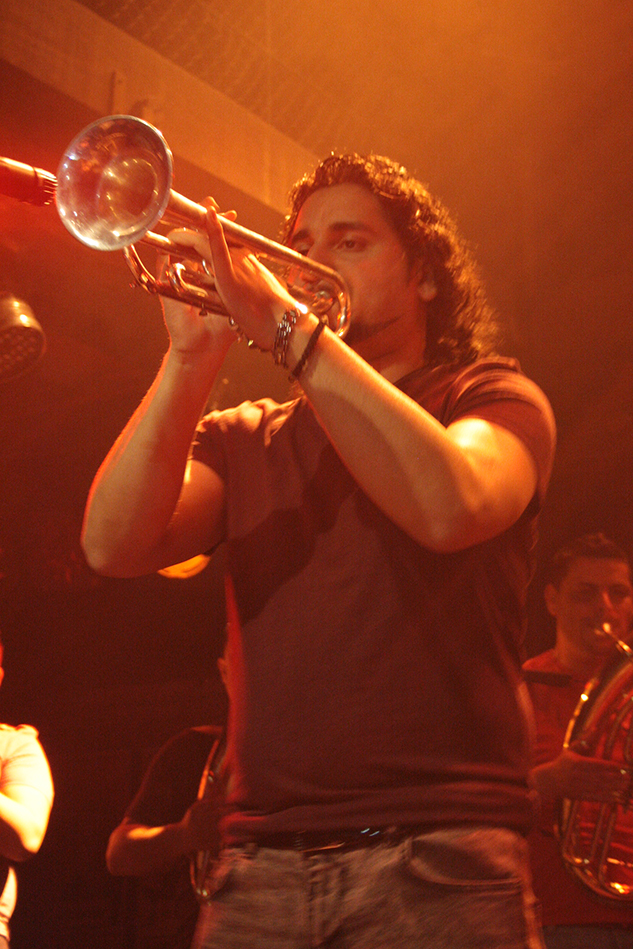 Es gibt weder eine Vorband noch eine große Show. Kurz nach 21 Uhr betritt ein Dutzend Männer in Alltagskleidung die Bühne und schnallt sich die Instrumente um: Gitarre, Akkordeon, Percussion und natürlich die Bläser. Dann kommen Vater und Sohn Markovic dazu, ebenfalls ohne großes Trara, und es wird losgelegt.