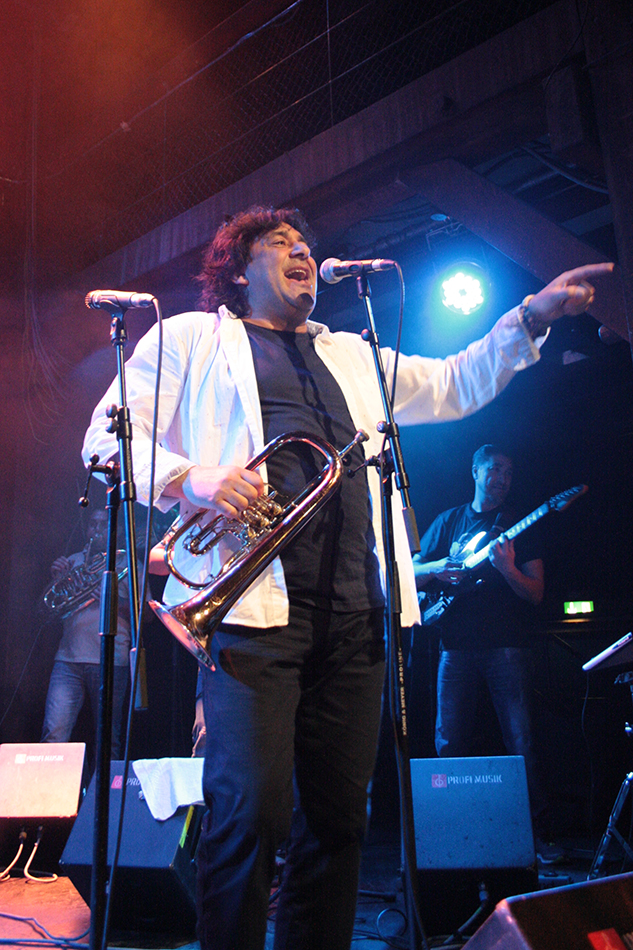 Allerdings handelt es sich bei diesen Songs um die großen Ausnahmen, die meiste Zeit bleibt die Stimmung verhalten. Das mag am Altersdurchschnitt des Publikums liegen, der Bobans Alter (49) ziemlich nahe kommt. Vielleicht liegt es auch an der Größe der Halle: Die Fabrik ist eine große Location und an diesem Abend nur zur Hälfte gefüllt. Wenn einer tanzt, hat er dazu reichlich Platz und reißt die anderen nicht mit. Eher erntet er genervte Blicke oder wird, wenn er sich zu laut unterhält, gebeten, bitte weiter hinten zu quatschen. Wirklich wahr. Oder liegt es am Orchester selbst, dass der Saal nicht kocht? Marko Markovic hüpft umher wie von der Tarantel gestochen und wackelt wild mit den Hüften, doch von den anderen rührt sich unter der strengen Aufsicht von Silberrücken Boban kaum einer vom Fleck.