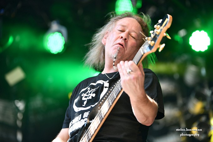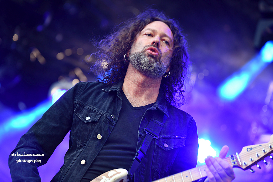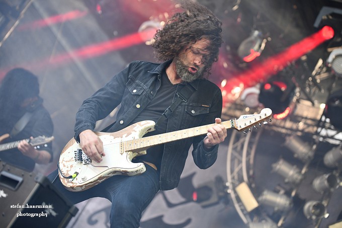 Nun folgt mit EVERGREY eine Band, die Chefstratege Michael Bohnes nach eigener Aussage erst kürzlich für sich entdeckt hat und sofort den Wunsch in ihm aufkommen ließ, die Jungs aus Göteborg für das CASTLE ROCK Festival zu gewinnen. Gesagt – getan. Die Mannen um TOM ENGLUND entern die Bühne und mit den ersten Takten der Dark Melodic/Progressive Metaller wird klar, warum die Band seit Jahren über die Landesgrenzen Schwedens hinaus eine ständig wachsende Fanbase hat. Starke Melodien sind eingebettet in knallharte Riffs, der treibende Groove der Rhythmusfraktion um Bassmann Johan Niemann und Drummer Jonas Ekdahl tut ein Übriges.