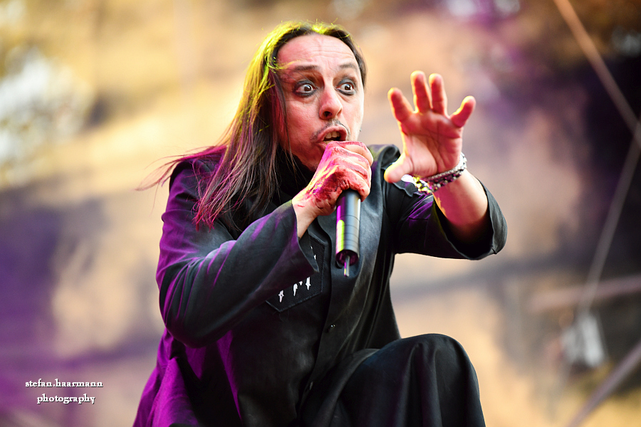 Zum Abschluss des Festivals geht es dann schminktechnisch noch einmal in die Vollen, denn mit LACUNA COIL betreten die Mailänder um Frontgirl Cristina Scabbia die Bühne. Markenzeichen der Combo: Reichlich weiße Schminke in den Gesichtern von Basser Marco Coti Zelati, Gitarrist Diego Cavallotti und Schlagzeuger Ryan Blake Folden sowie Theaterblut an den Händen bei Co-Leadsänger Andrea Ferro und im Gesicht sowie an den Händen von Frontfrau Cristina Scabbia, das Ganze ist halt als Gesamtkunstwerk zu betrachten.