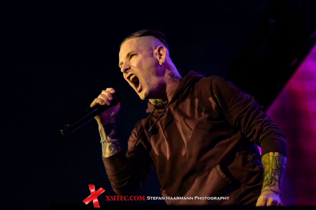 Los geht’s mit „The Box“ als Intro vom Band, dem Opener des aktuellen Albums „CMF2“. Die Zeile „take a breath – enjoy the show“ ist Programm und wird sogleich mit Leben gefüllt, da mit den letzten Tönen des Songs die Musiker aus der Garderobe kommen und die Bühne in Beschlag nehmen. Zuletzt betritt er die Bühne, der Maskenmann aus Des Moines, Iowa, allerdings ohne die verhüllende Requisite, hinter der sich er bei SLIPKNOT in bekannter Manier verstecken kann. „Made Of Scars“ als Abrechnung mit der eigenen Vergangenheit rüttelt den RuhrCongress vom ersten Takt an durch und zeigt alle Stärken des Songwriters, der zwischen Härte und Gefühl alle Register zu ziehen im Stande ist.