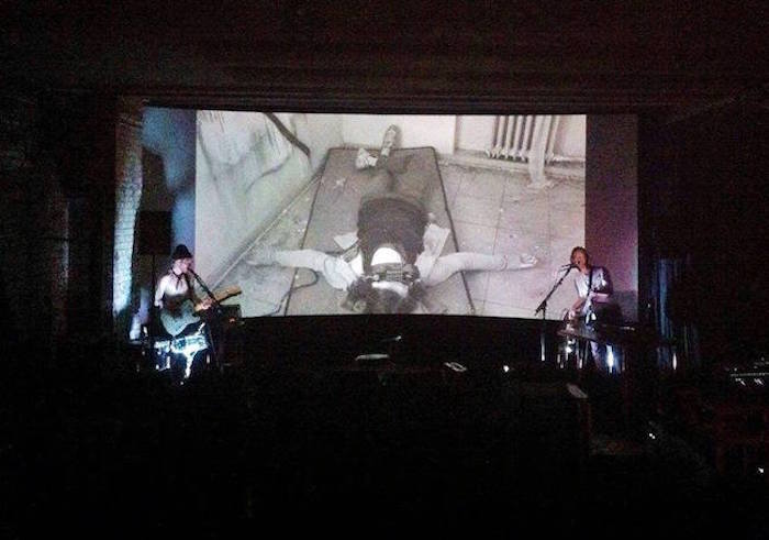So sieht dann der Beginn des „post-apokalyptischen Soundtracks“ live auf der Kino-Bühne aus, der hoffentlich die Kritiker-Worte bestätigt.