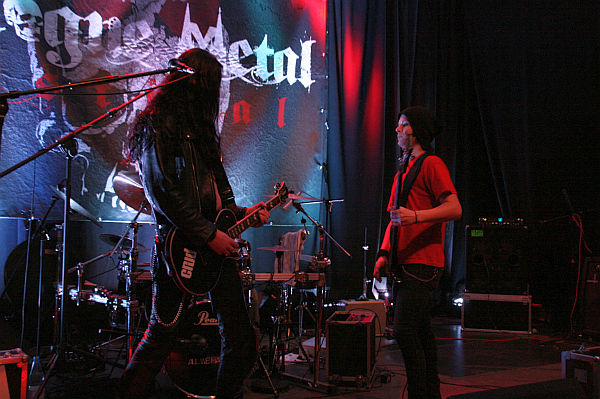Bei einem so langen Festivaltag gehört nicht nur das Angucken von Bands zum Programm, sondern auch der gepflegte Smalltalk mit anderen Besuchern und Bekannten. Und so vertreibt man sich die nächste Zeit zunächst auf der Terrasse, wo FOOD FOR THE MONKEYS mit netter Akustikmucke die abendliche Stimmung untermalen. Später geht es dann in die Backstage-Katakomben, wo sich CRUD-Basser Damour mit seinem BEASTMILK-Shirt als musikalischer Gourmet entpuppt und man ansonsten eine gute Zeit mit ihm, seinem Bandkumpan Jeno und, dem Frontmann von GUERILLA TREE und seinem Drummer Robert Braune sowie deren Freundinnen (soweit vorhanden und anwesend) und Schwester Krov hat. Das alles hat zur Folge, dass der Auftritt der Power Metaller HADEAN verpasst wird.