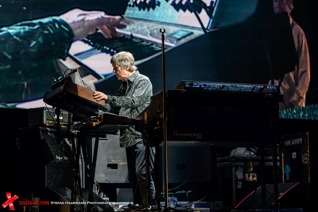 Nach „Into The Fire“ folgt dann die offizielle Visitenkarte, die der Ire in Form eines grandiosen Gitarrensolos abgibt, nach welchem die Halle ihm berechtigterweise zu Füßen liegt. „Uncommon Man“ vom 2013er Album „Now What?!“ zeigt die Band in toller Spielfreude und während das folgende „Lazy Sod“ erneut beweist, wie stark das neue Album ist, hat im Anschluss Don Airey seinen ersten Solopart, den er im Laufe der Show noch einmal ausdehnt und im zweiten Teil noch locker ein paar Soundschnipsel des Steigerliedes in den Klangteppich einwebt. Das ist ganz großes Kino und wird in der ausverkauften Grugahalle entsprechend goutiert.