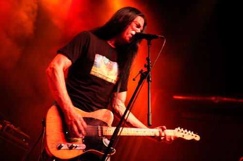 Natürlich spielte man auch die Songs vom aktuellen Album ’rauf und ’runter. Nicht nur „Crooked smile“ erinnerte frappierend an [den rockigen] NEIL YOUNG. Für drei Songs -„Lazy Monday“, „Runnin’ outta time“ und „Two for tuesday“- enterte der QUIREBOYS-Keyboarder Keith Weir die Bühne. Die Gitarrenfront von Dan und Leadgitarrist Warner E. Hodges war allerdings zu übermächtig, so konnte er nur kleine Farbtupfer setzen. Apropos Warner Hodges: Der ehemalige JASON & THE SCORCHERS Axtschwinger war DER Gitarrist des ganzen Abends. Er ließ die unglaublichsten Soli vom Stapel, war ständig an der Bühnenkante zu finden und zu jedem Gag aufgelegt. Der Boogie-Stampfer „Kind hearted woman Blues“ wurde zur aufregenden Spielwiese für Warner Hodges.