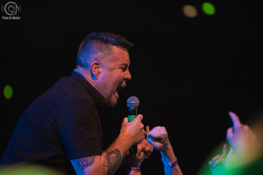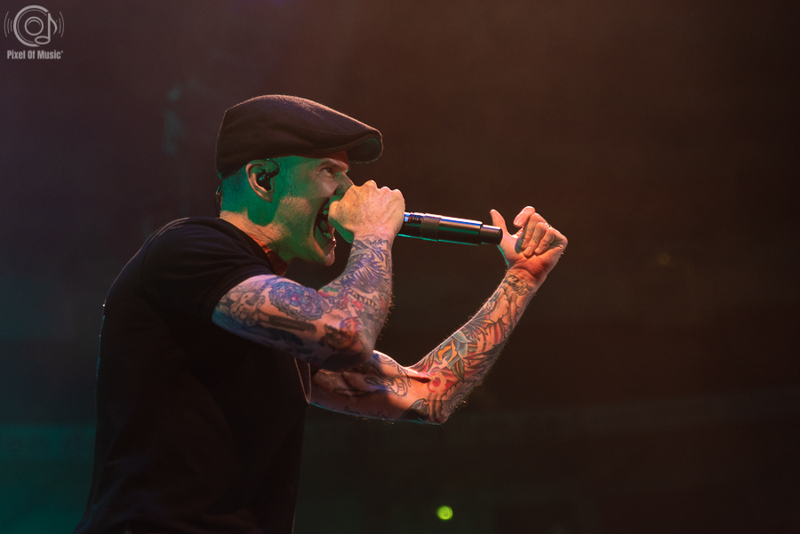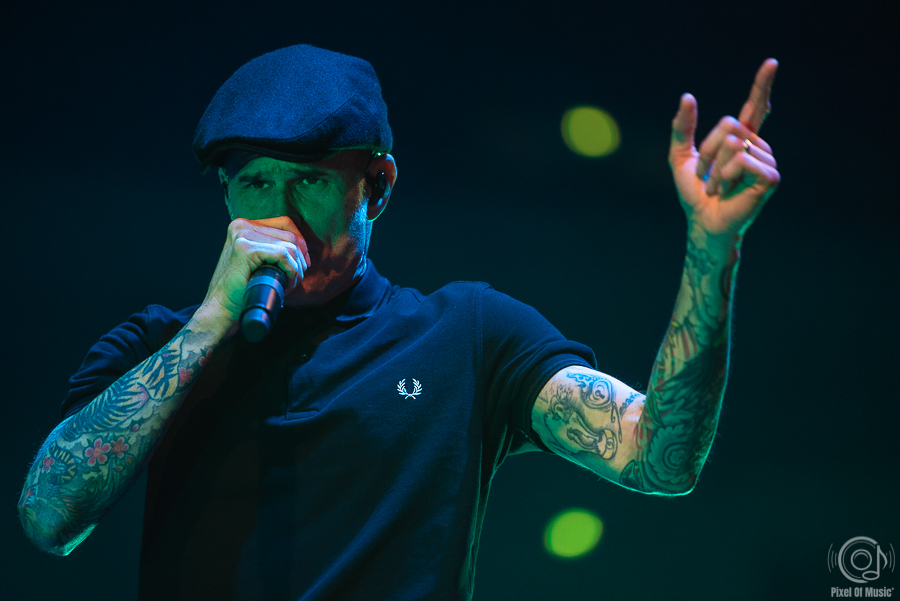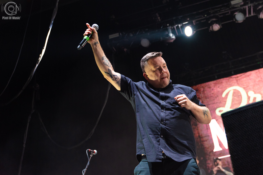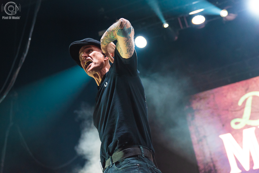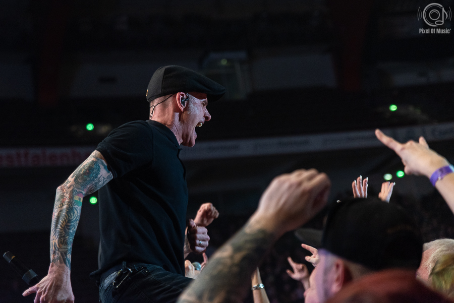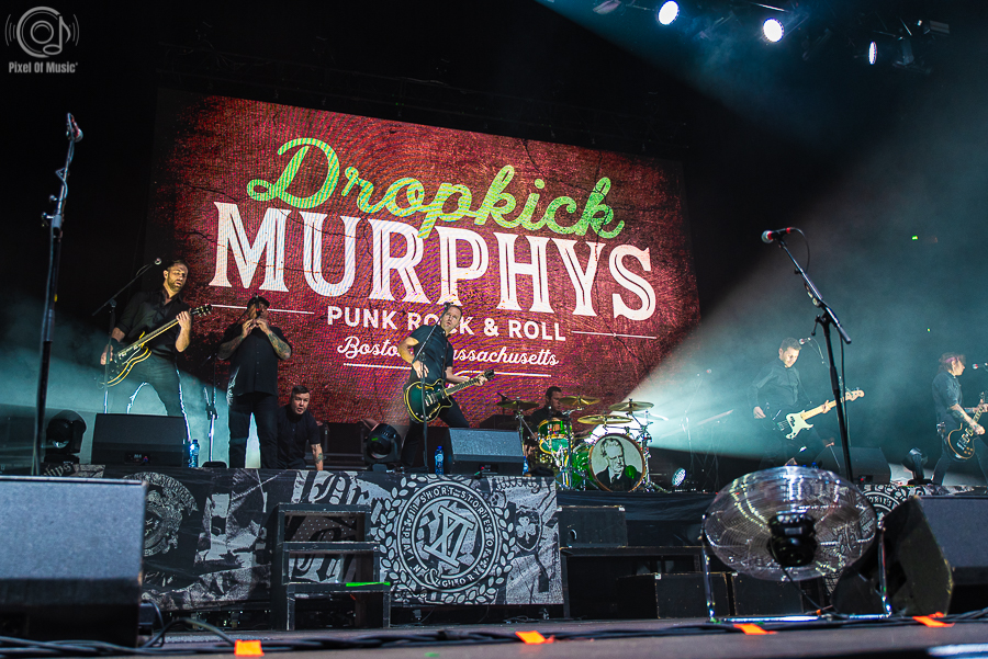 Nach einer längeren Umbaupause war es dann gegen 21:45 Uhr soweit. Zu „The Foggy Dew“ erlischt das Licht und kurze Zeit später stehen die Dropkick Murphys auf der Bühne. Gestartet wird mit „The Lonesome Boatman“ vom aktuellen Album „11 Short Stories Of Pain & Glory“. Gefolgt von „The Boys Are Back“ dem ersten Hit am Abend. Al Barr und Ken Casey, der mittlerweile ausschließlich singt, überklettern häufig den Graben vor der Bühne und stehen auf der Absperrung. Sie suchen den direkten Kontakt zum dortmunder Publikum und lassen dieses auch immer wieder vereinzelnd in ihre Mikrofone singen. Ansonsten gab es leider nur wenig Interaktion mit dem Publikum. Die beiden Sänger legten aber reichlich Kilometer auf der Bühne zurück.
