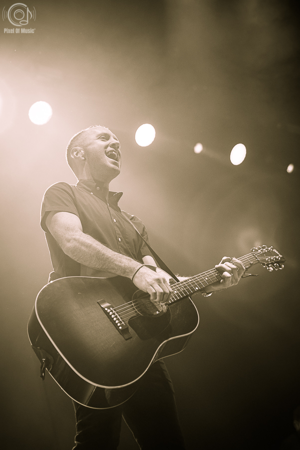 Dann folgten Titel wie „Try This At Home“ oder „Photosynthesis“, bei dem sich einige Zuschauer bei der Textzeile „I Won´t Sit Down, I Won´t Shut Up And Most Of All I Will Not Grow Up“ als ziemlich textsicher erwiesen. Frank wies die Fans auch noch einmal ausdrücklich darauf hin, dass nach ihm nicht Schluss sei. Es wäre tatsächlich noch eine weitere Band dabei. „Ich weiß, Ihr seid nur wegen mir hier, danke dafür und da habe ich Euch ein kleines Geschenk mitgebracht und diese jungen, unbekannten Amerikaner eingeladen, die direkt nach mir spielen werden.“. Man sollte ihnen ruhig mal eine Chance geben und zumindest für 2 – 3 Songs bleiben… ;-) Ob Al Barr backstage auch darüber lachen konnte? Ich fand es jedenfalls schade, als Frank Turner dann seinen letzten Song beendet hatte und die Bühne räumen musste. Der hätte noch den ganzen Abend weiter machen können.