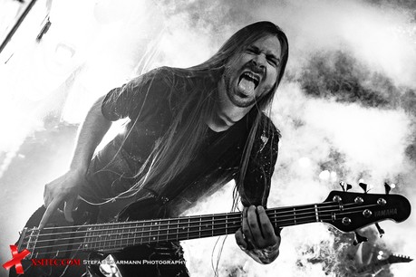 Bei „Bleeding Out“ lichtet sich der Nebel etwas und gibt den Blick auch auf Drummer Felix Keith frei, der zusammen mit Posen-König Stotzem für den prächtigen Groove verantwortlich zeichnet. Nicht zu vergessen Dave Hadarik, der nun auch erstmals aus dem Nebel auftaucht. Nach „Lullaby“ folgt das grandiose „Angel´s Suicide“ und spätestens jetzt gibt es im Publikum kein Halten mehr, denn auch das folgende „Doorway To Salvation“ wird kräftig abgefeiert.