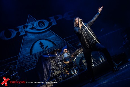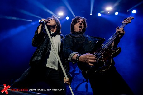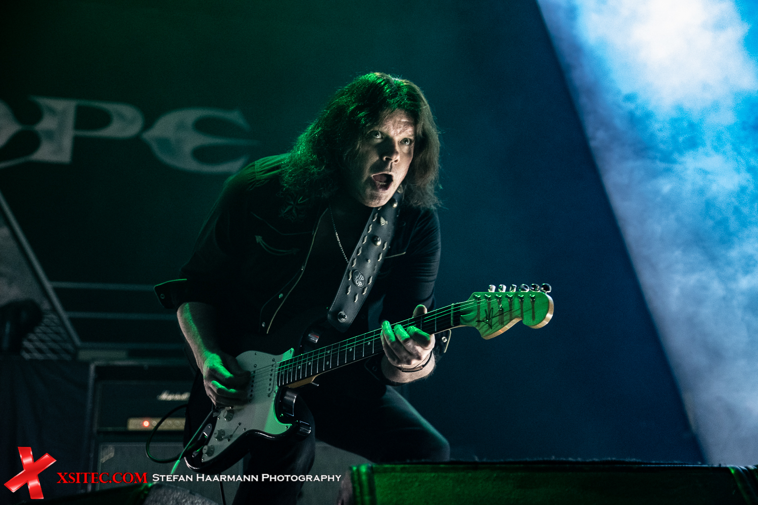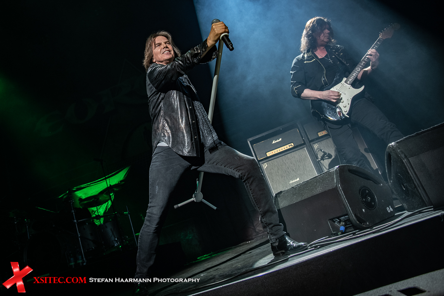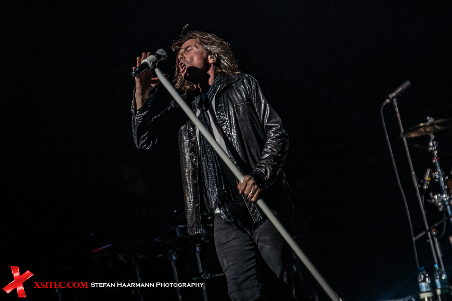 Die Schweden von EUROPE starten mit „Walk The Earth“ in den Abend und es wird sofort deutlich, wie sehr die Musiker die Konzerte und das Publikum während des zweijährigen Showstoppers COVID-19 vermisst haben. Joey Tempest, der topfit und durchtrainiert den weiß lackierten Mikrofonständer genauso schwingt wie in den 80ern, hat die Fans sofort auf seiner Seite. „Rock The Night“, sowie „Scream Of Anger“ rütteln dann auch den letzten Fan vehement wach, denn während die Beleuchtung lediglich zwischen Blau und Grün changiert, verstehen es die Musiker, die Songs erfrischend und druckvoll zu interpretieren.