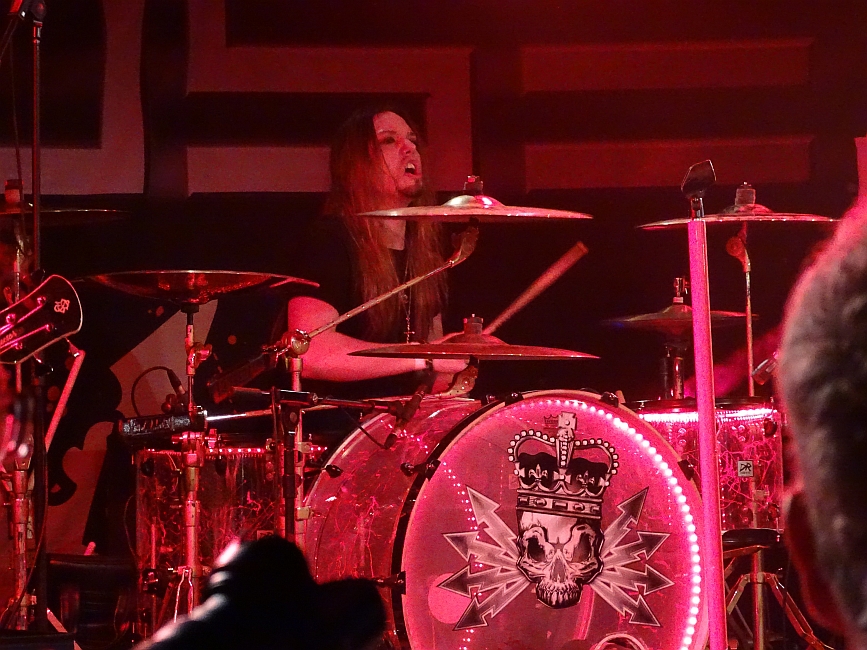 „Black Rain", „Blood Enemies" rocken den Saal noch einmal kräftig durch und nach einer furiosen Version ihres „Stand On Your Feet" gehen die vier Schweden von der Bühne.
