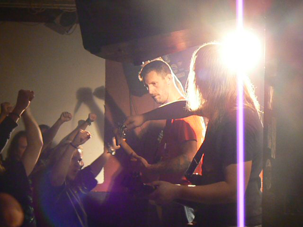 Womit wir bei CEPHALIC CARNAGE wären, die mir auf Konserve immer zu stressig und zerfahren sind. „Live geht das besser“, meint HARKONNEN-Sänger Phillip noch zu mir, bevor der optisch recht gemischte Haufen aus Colorado loslegt und Phillip sollte Recht behalten. Sie Zeichen stehen auf Grindcore und Sänger Leonard Leal erklärt auch gleich, warum das so ist: „Als Grindcore-Band kannst du machen, was du willst. Und Spaß haben.“ Das trifft den Nagel auf den Kopf und CEPHALIC CARNAGE hacken sich engagiert durch ein Set, das zwischen allen vorstellbaren Musikrichtungen pendelt, als Basis aber immer wieder zu ultraschnellem Gehacke zurückkehrt. Faszinierend ist nicht nur die Redneck-Frisur von Bassist Nick Schendzielos, sondern auch seine brillante Art den Fretless-Bass zu bearbeiten und nebenbei noch mit geschwollenen Halsvenen tiefe Growls abzuliefern. Amüsant ist am Ende des Sets die Black-Metal-Verarschung inklusive entsprechender Maskierung. Insgesamt präsentieren sich CEPHALIC CARNAGE als unterhaltsame Krachbrüder, die einen ausgeprägten Hang zu illegalen Rauchwaren zu haben scheinen, roch es doch in der Ecke mit den Gitarrenkoffern heftigst nach verbranntem Gras.