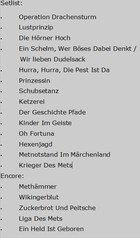 Als Zugabe gibt es in der Folge mit „Methämmer“ den Titeltrack des aktuellen Albums, bevor mit „Wikingerblut“ eine weitere Stufe der Partyrakete gezündet wird. „Liga Des Mets“ und „Ein Held Ist