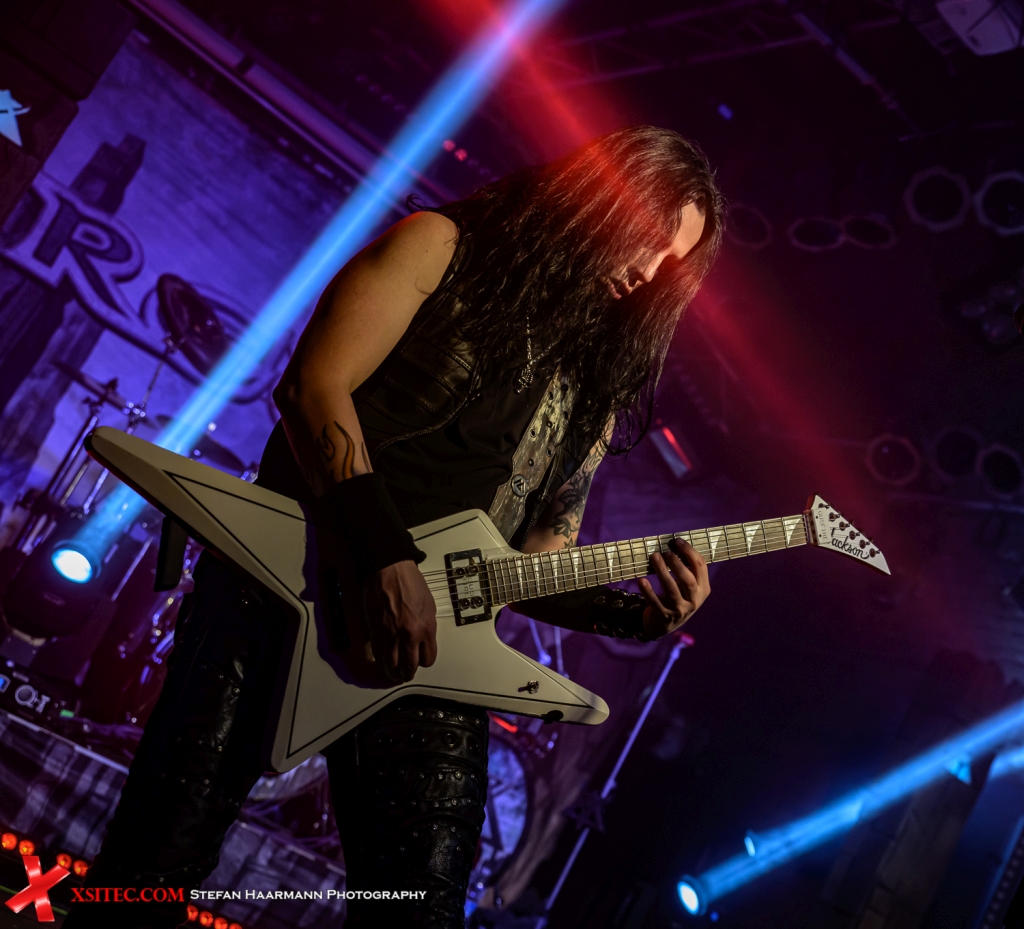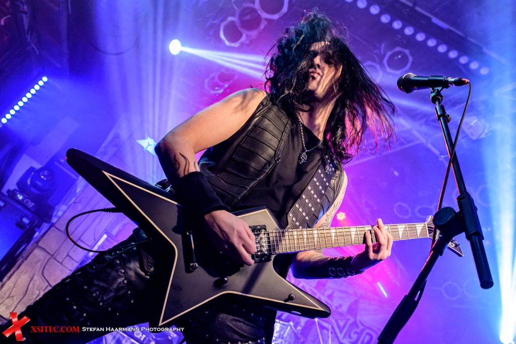 Mit „Salvation Day“ vom neuen Album „Stand United“, das an diesem Tag veröffentlicht wurde, geben FIREWIND die Richtung vor, in die sich der Abend entwickeln sollte. Neben dem bestens aufgelegten Gitarren-Gott Gus G, der bekanntlich schon für OZZY OSBOURNE und ARCH ENEMY in die Saiten gegriffen hat, brilliert Herbie Langhans (AVANTASIA, VOODOO CIRCLE, SINBREED) souverän auch in den schwierigsten Passagen der mit Highnotes gespickten Gesangslinien, die den Unterschied zwischen „normal“ und „fantastisch“ glasklar markieren. Weiter geht’s mit „Destiny Is Calling“, ebenfalls vom neuen Album, ein echter Ohrwurm, der mit einem grandiosen Gus G-Riff beginnt und in einen mächtigen Chorus mündet, den man so schnell nicht mehr aus dem Kopf bekommt. Im Mittelteil folgt dann ein Solo der Marke Gus G, in dem der Magier alle Register seines Könnens zieht. Ein echtes Brett.