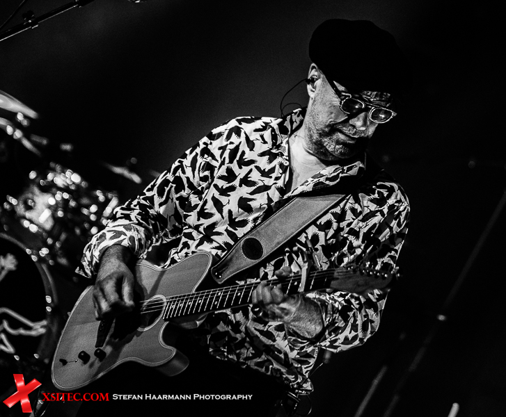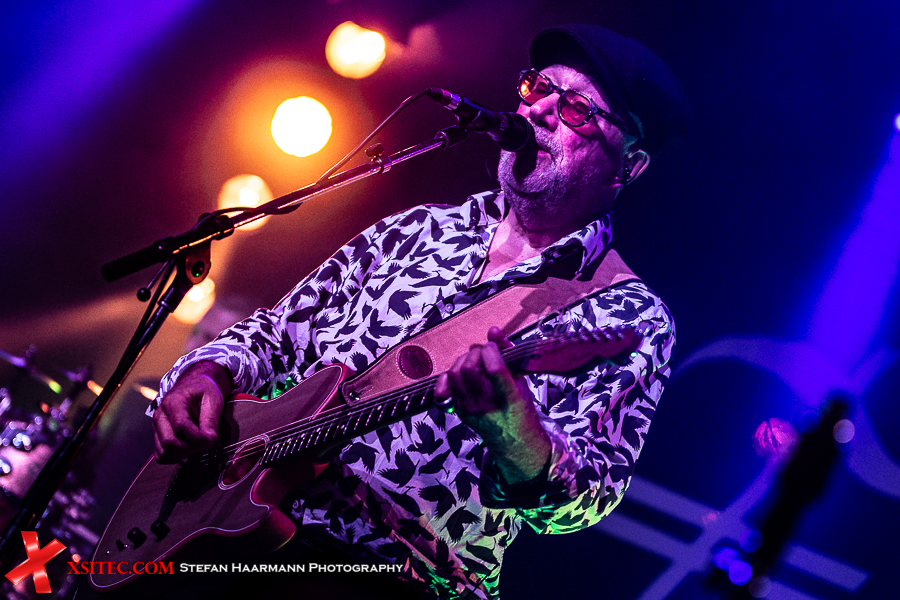 Es ist also alles angerichtet für einen unvergesslichen Abend. Hinter dem Schlagzeug prangt das markante Bandlogo, anfangs in pink-violettes Licht getaucht. Pünktlich um 20.00 Uhr betritt die Band die Bühne, John Watts folgt ein paar Takte später mit seinem berühmten Schlapphut und breitem Grinsen. „Stolen“ vom aktuellen Album „Swimming In Thunderstorms“ startet mit Reggae-Rhythmen zu bewusst dezent gehaltenem Gesang, der die 80er Jahre Falsett-Eskapaden vermeidet. Nach „Choose“ folgt mit „The Heaven Injection“ ein weiteres Highlight des neuen Albums, ein Titel, der hier in Bochum ausgesprochen gut ankommt.