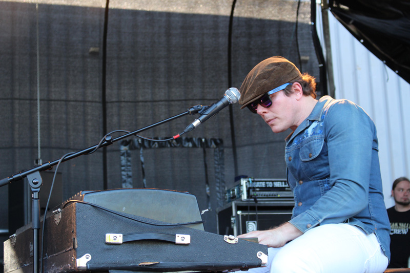 Solche Tipps hat das ihnen folgende Trio nicht nötig: Aus ihrer Vorliebe für Black Sabbath und Muddy Waters machen THE MUGGS ebenso wenig einen Hehl wie an der Idee, dass sich die weite Anreise aus Detroit lohnen muss. Ihr Auftritt gerät deutlich lebendiger und wer Danny Methric beim Gitarrenspiel zuschaut, der ahnt, dass an dem Gerücht, dass Rock Musik jung hält, vielleicht doch etwas dran sein könnte – auch wenn das Bass sitzenderweise am Keyboard gespielt wird?! Das sympathische Trio fackelt nicht lange und legt einen blitzsauberen Gig auf die Bühne.