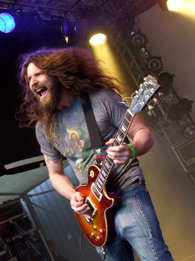 Nicht wenige warten an diesem Wochenende vor allem auf den Auftritt von UNCLE ACID & THE DEADBEATS aus dem Vereinigten Königreich, die Gerüchten zufolge in den von Spinnweben verhangenen Gewölben eines Edgar-Wallace-Schlosses hausen, wo sie sich im Halbdunkel an alten Horrorschinken ergötzen, in nahezu alchemistischer Manier psychedelischem Krach frönen, und sich von garstigen kleinen Kindern ernähren, während es ihre Haushälterinnen allenfalls eine Nacht bei ihnen aushalten. Gerüchte hin oder her, die Band macht einen selbstbewussten und musikalisch soliden Eindruck, ohne mich nachhaltig begeistern zu können. Die Grabkammern, in denen sie sich bedient, wurden in den vergangenen Jahren zu oft geplündert, um noch den großen Überraschungseffekt zu erzielen. Auf dem dunklen Waldweg Richtung Parkplatz kann ich mir zu den Klängen jedoch ohne weiteres ausmalen, dass dem Matsch zu meinen Füßen gleich ein Zombie entspringt, der mir ob meiner Ignoranz gegenüber solch einer Kultband die Hölle heißmacht – mit „Brutus Is A Hellhound“ im Ohr kann mich aber auch diese Vorstellung nicht erschrecken.