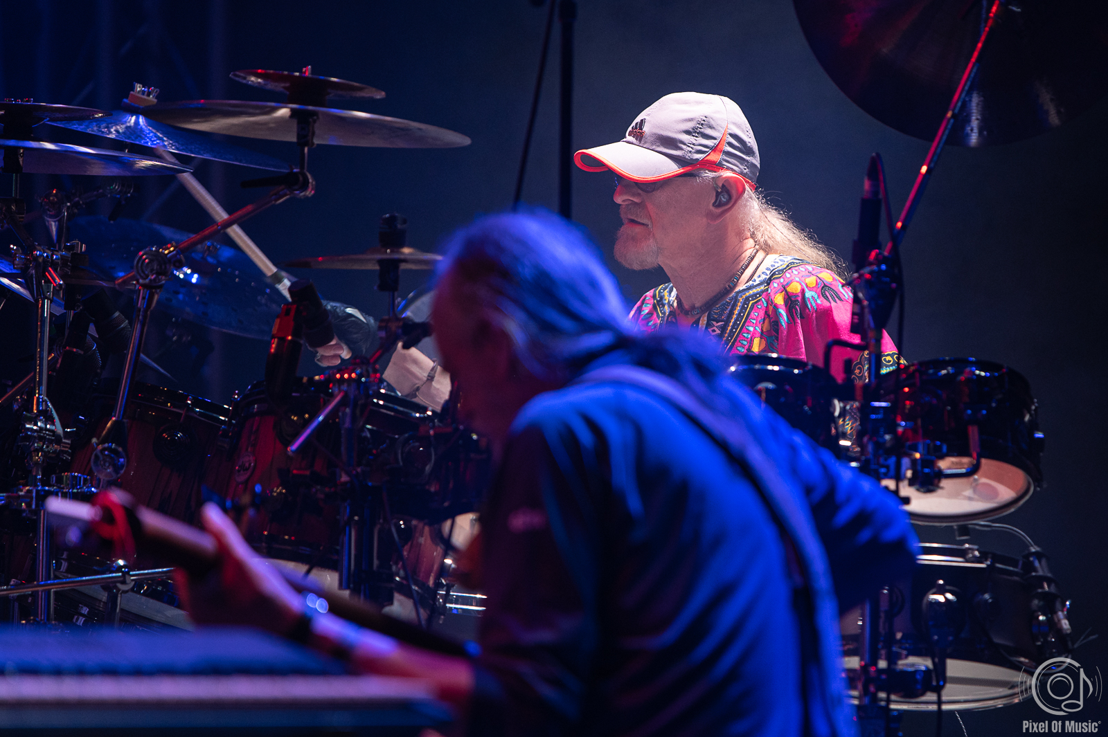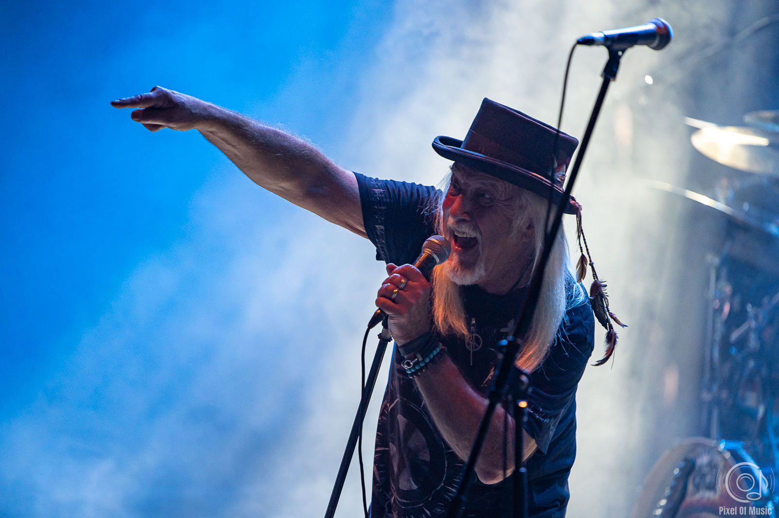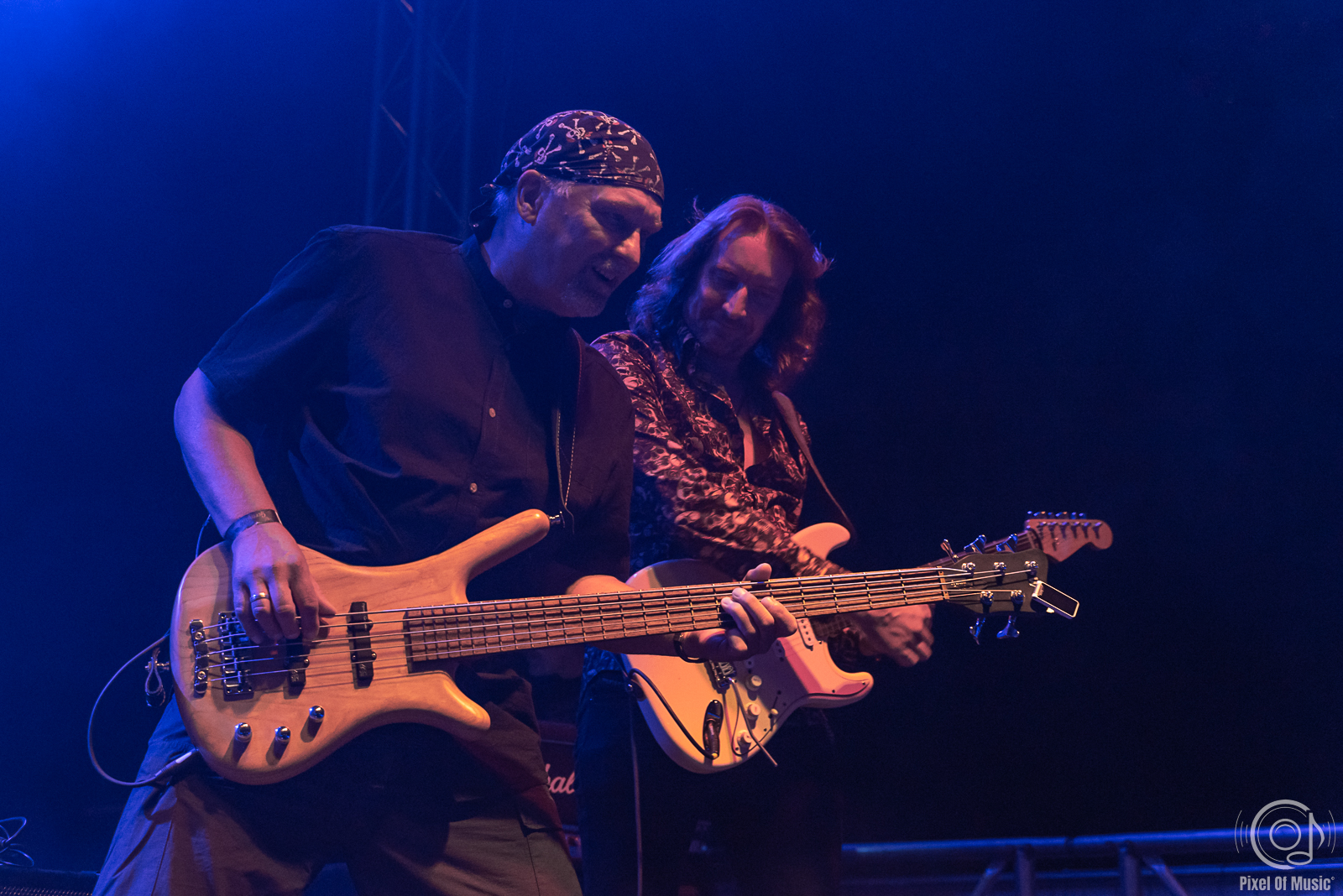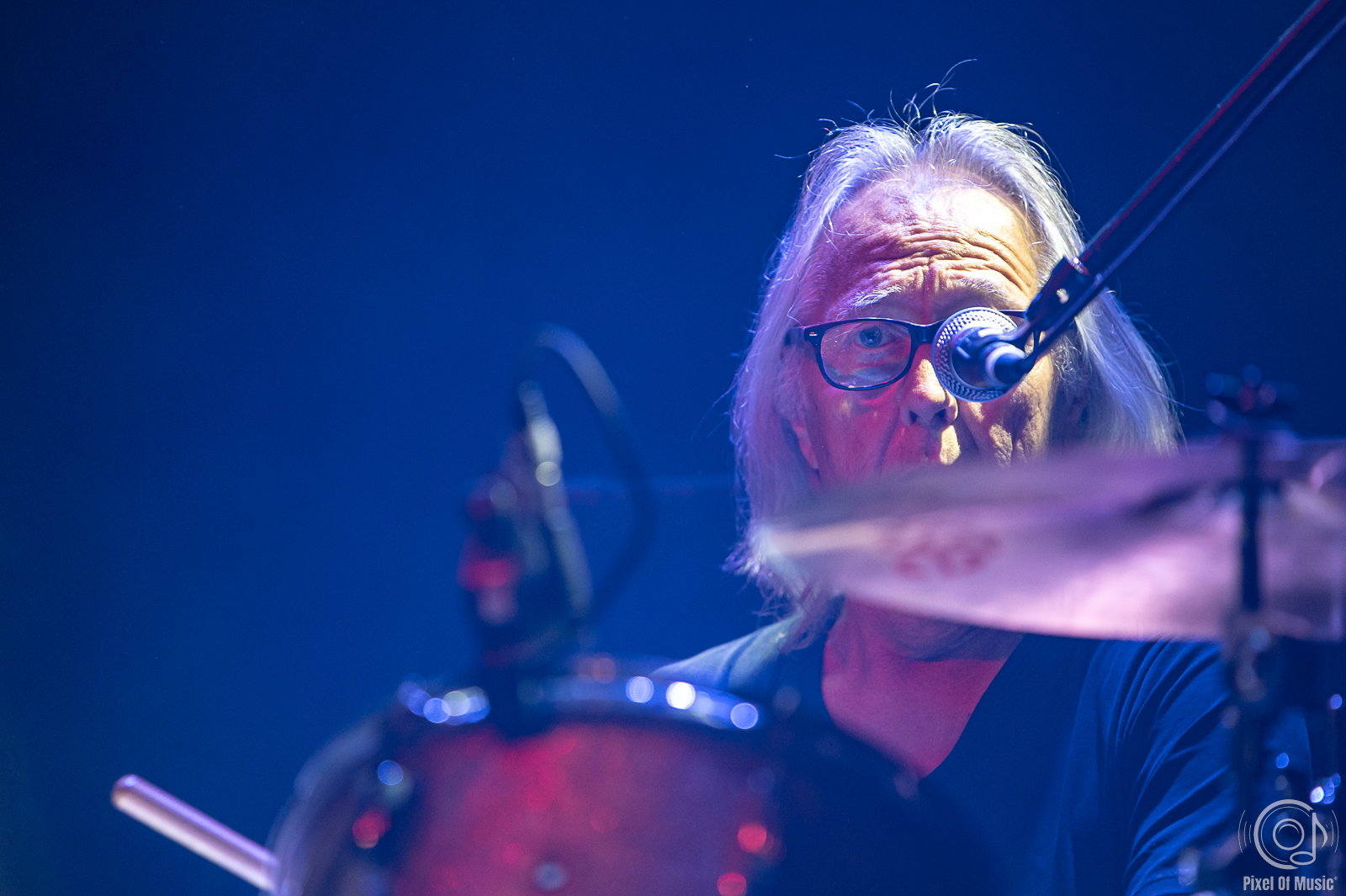 Manni durfte dann auch fast gleich sitzen bleiben, da er auch die Schießbude bei der nächsten Band des Abends sein Spielfeld nannte. Eine Band, die eine ähnlich lange und abwechslungsreiche Geschichte vorzuweisen hat, durfte nach einer kurzen Umbaupause gegen 18:30 Uhr die Bühne entern. „Birth Control“, gegründet in Berlin 1966, war der zweite Act auf der Hauptbühne in der Höhle. Ihren Namen hat die Band einem Moderator des Radiosenders AFN (American Forces Network) zu verdanken, der den englischen Begriff für Geburtenkontrolle im Zusammenhang mit der päpstlichen Enzyklika zur Geburtenkontrolle erwähnte. Und ZACK, war der Bandname gefunden. Und wer weiß, wer als erster bei Birth Control die Drumsticks geschwungen hat? Jawoll, der Top-Moderator des „Schmunzelfernsehens“, Hugo Egon Balder.