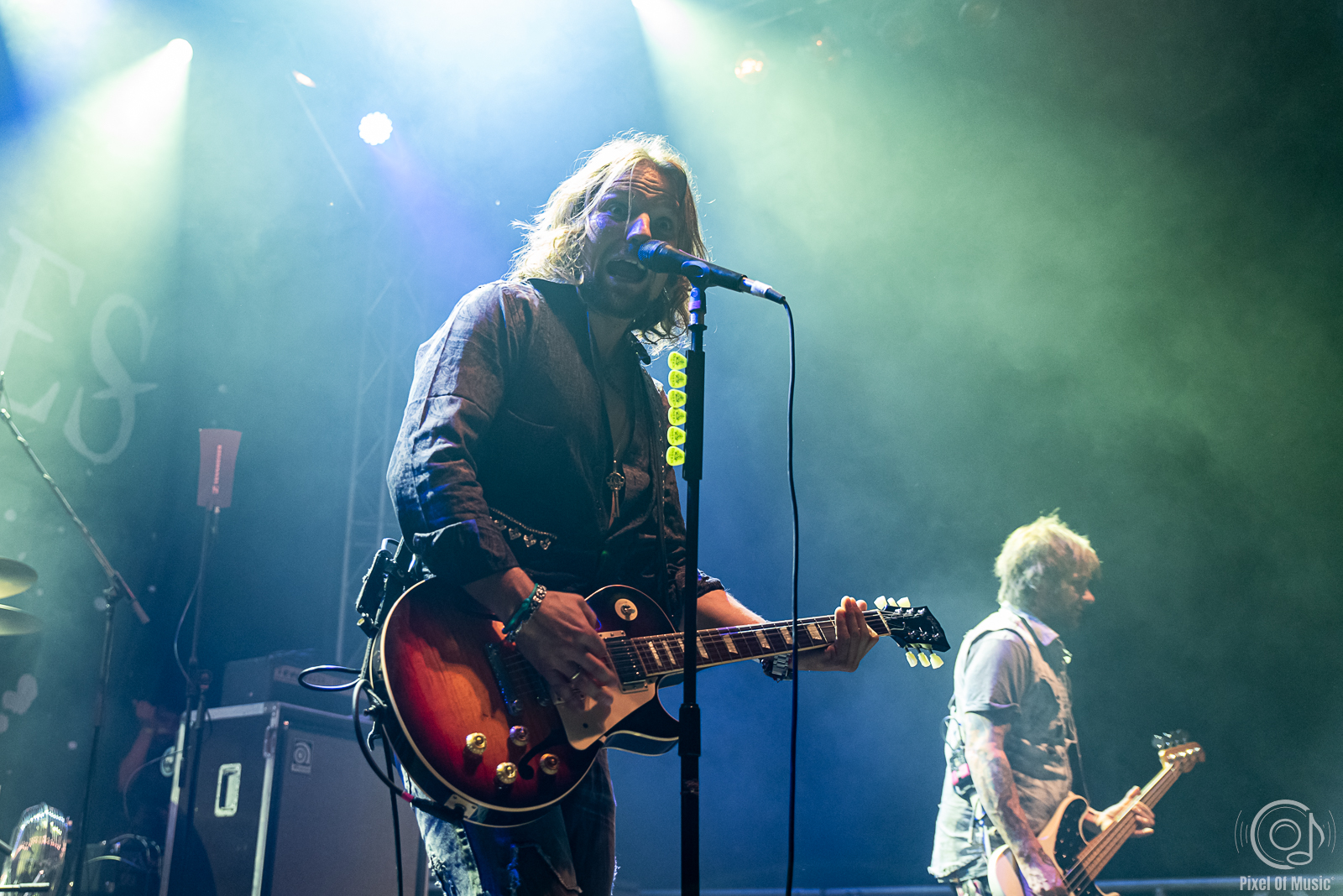 Mittlerweile war es schon fast 23:45 Uhr und der letzte Auftritt des Abends stand an. Die Wiesbadener Rockband „The New Roses“ sollte als Headliner das Schlusslicht des Abends sein. Leider ist dies nicht immer eine dankbare Aufgabe. Die Reihen vor der Bühne hatten sich schon kurz nach Ende des vorherigen Auftritts gelichtet. Einige machten sich bereits auf den ggf. weiten Heimweg. Vermutlich ein Grund, warum der Headliner für das Jahr 2023, AXXIS, hier lieber die vorletzte Geige spielen möchte. Aber der vierköpfigen Band um Sänger und Gitarrist Timmy Rough schien es nichts auszumachen, dass die Höhle etwas leerer wurde. Man hatte eher den Eindruck, dass sie versuchten die bereits vor der Höhle befindlichen Gäste wieder hineinzulocken.