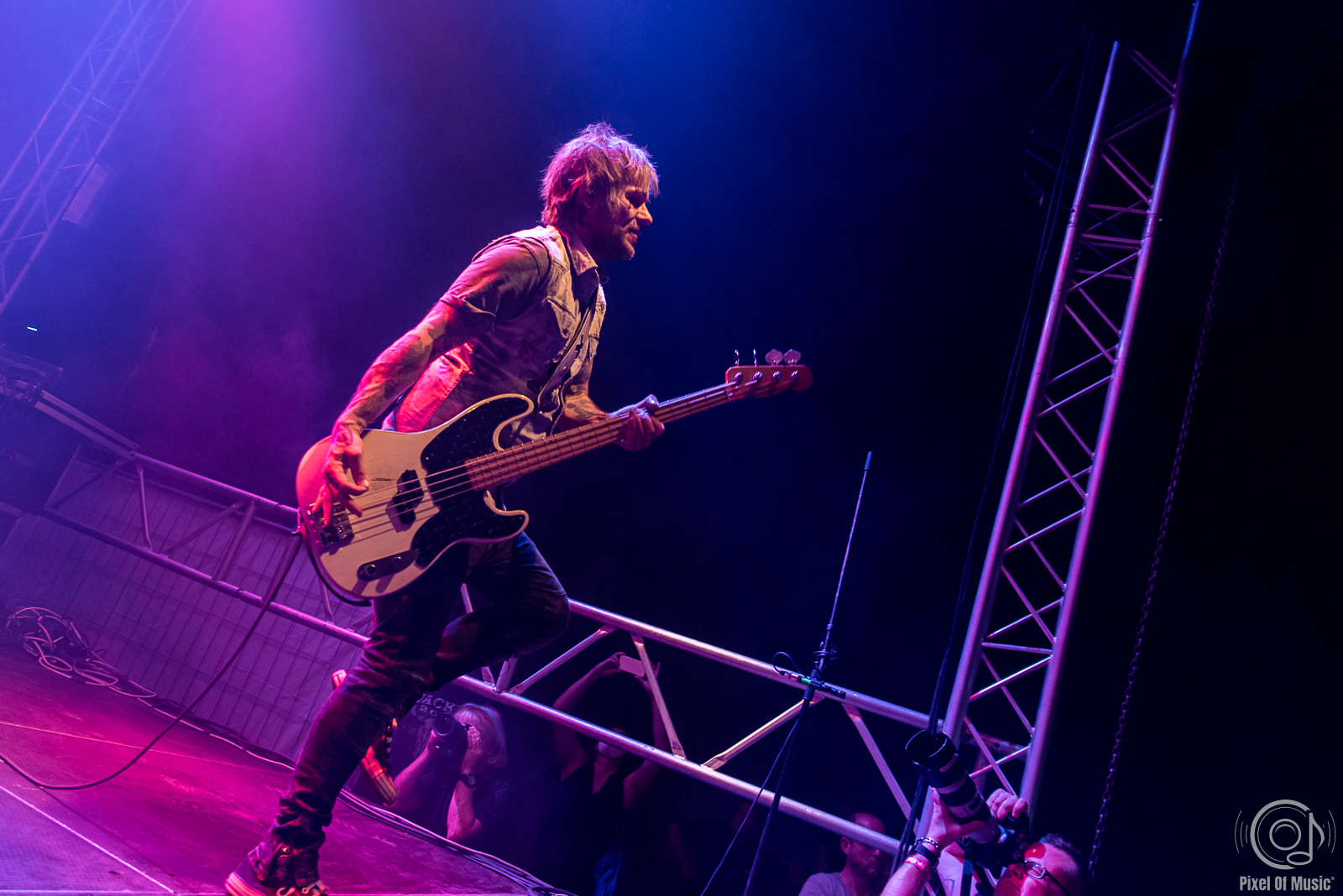 Die vierte Band des Abends kann man im Nachhinein wohl als den „heimlichen“ Hauptact bezeichnen. Die Blues Formation „Band Of Friends“ um den nordirischen Bassisten Gerry McAvoy feiert die Musik des bereits 1995 verstorbenen Gitarristen Rory Gallagher. McAvoy war selber über 20 Jahre enger Wegbegleiter von Gallagher und ist auf fast allen Tonaufnahmen des Ausnahmegitarristen zu hören. Die Power, mit der dieser Mann die Bühne zum Beben gebracht hat, ist kaum zu beschreiben. Fast mit der Leichtigkeit eines Flea von den Red Hot Chili Peppers rockte dieser 70-jährige die Balver Höhle. Das war für mich definitiv das Highlight des Abends, auf das die meisten Besucher gewartet hatten. Im übertragenen Sinne kann man auch sagen, die Höhle brannte. Gut, dass die Feuerwehr vor Ort war…