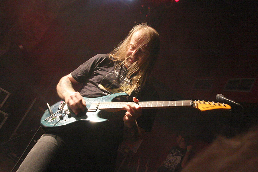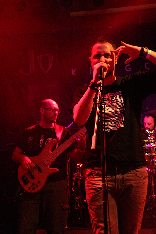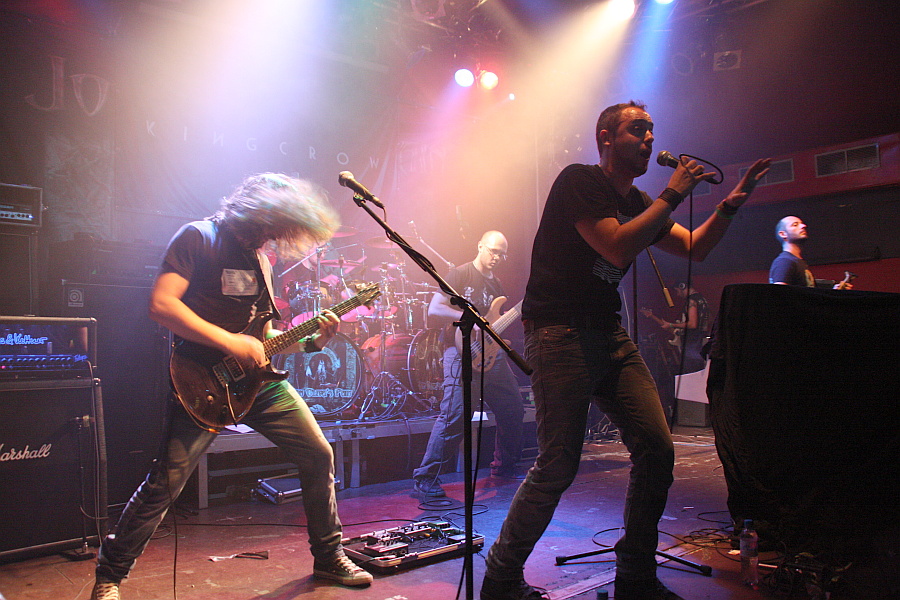 Musikalisch wird nicht sonderlich harter, aber umso spannenderer, sehr atmosphärischer Progressive Rock geboten, bei dem nicht nur die spielerische Darbietung überzeugen kann, sondern auch das Material selber. Selbst wenn man die Band noch nie gehört hat, kann man sich schnell von ihr mitreißen lassen und so fängt man langsam an, den Abend auch zu genießen. Besonders gelungen sind die immer wieder einfließenden folkloristischen Elemente, die ein sehr mediterranes Flair haben und so dafür sorgen, dass man KINGCROW auch als überaus eigenständige Band im Gedächtnis behält. Optischer Blickfang auf der Bühne sind Gitarrist Diego Carfolla und Sänger Diego Marchesi, die mit viel Bewegung bei der Sache sind, Geschmack beweist der Sänger darüberhinaus mit seinem T-Shirt, dessen Motiv sich am Plattencover von JOY DIVISIONs "Unknown Pleasures" orientiert. Letztlich eine überaus gelungene Darbietung einer höchst interessanten Band, deren Name man sich als Liebhaber von kühlem Progrock unbedingt merken sollte.