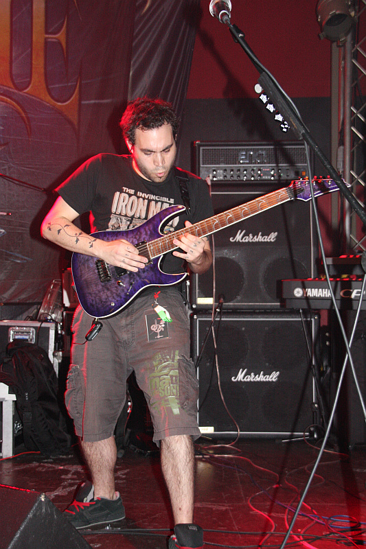 Zwei Vorbands sind an diesem Abend mit von der Partie. Die erste dürfte den wenigsten ein Begriff sein und so fragt man sich zunächst, was um alles in der Welt der bescheuerte Bandname MAX PIE bedeuten soll. Das Rätsel wird nicht gelöst. Die belgische Band, die 2005 als Coverband gestartet ist, spielt melodisch-progressiven Metal, der allerdings so gut wie niemanden, der heute anwesend ist, beeindrucken kann - ganz im Gegenteil. Ein Großteil des Publikums ist froh, als die Band die Bühne wieder verlässt. Das liegt vor allem daran, dass die Musik der Belgier völlig gesichtslos ist und komplett an einem vorbeizieht, ohne auch nur den geringsten Eindruck zu hinterlassen. Mit zunehmender Spielzeit fängt des Gedudel sogar gehörig an zu nerven. Auch der optische Eindruck der Truppe ist eher seltsam. Der Bassist sieht aus wie ein zu kurz geratener Bruder von GRAVE DIGGERs Chris Boltendahl, der Gitarrist trägt sein Instrument unter der Brust und hat sich seine Bühnenperformance bei IRON MAIDENs Janick Gers abgeguckt. Dementsprechend albern tänzelt er auf der Bühne herum und ist sich auch nicht dafür zu schade, sich umzudrehen und mit dem Hintern zu wackeln. Und Sänger Tony hat die Ausstrahlung eines südeuropäischen Bauarbeiters. Das kann man sich noch nicht einmal schön saufen.