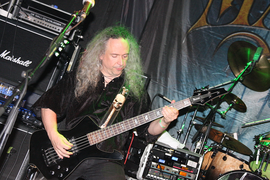 Auch der Name der zweiten Vorband ist nicht gerade geläufig, aber zumindest ein paar Leute können etwas mit KINGCROW anfangen, denn die haben schon einmal im Turock gespielt und zwar als Vorband von FATES WARNING. Die italienische Band nimmt die Show an diesem Abend für eine DVD-Veröffentlichung auf, was sich nicht als schlechte Wahl entpuppt, denn das Publikum spendet der Truppe reichlich Applaus.