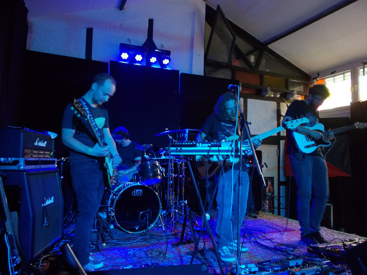 Deutlich dynamischer gestaltet sich der Auftritt von PLANISPHERE, die mich zunächst mit ihren schönen wie eingängigen Melodielinien an eine schnellere Version von God Is An Astronaut erinnern. Das Quartett hat allerdings mehr zu bieten: Wendungen und Brüche, die jeden Song spannend gestalten, ohne dass die dichte Atmosphäre darunter leidet. Proggig, aber keineswegs (zu) verkopft. Ist anfangs noch im Publikum die Witzelei zu vernehmen, dass Instrumental-Rocker allesamt nur auf den Boden gucken, anstatt Kontakt zum Publikum aufzubauen, so erübrigt sich solch liebevoller Spott alsbald. Was die vier Jungs in der Folge auf der Bühne abreißen, spiegelt sich im anhaltenden Applaus auch einiger soeben neu gewonnener Fans: Das war fulminant und erinnerte vom Überraschungseffekt her sogar an das erste (legendäre) Toundra-Konzert im Vortex!