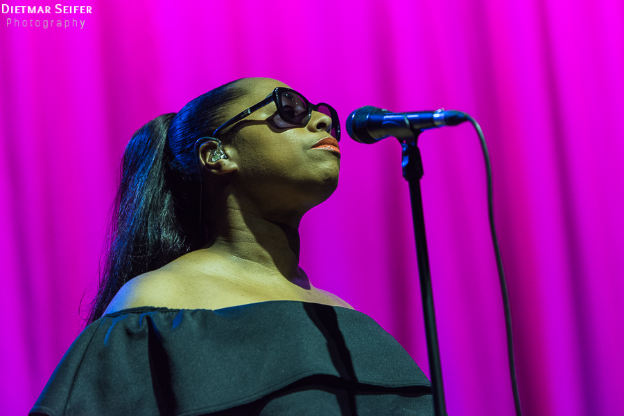 Jetzt nach fast drei Dekaden wollte ich es noch einmal wissen. Kann sie es besser als damals? Ihre Stimme war ja immer schon außergewöhnlich und mit einem hohen Wiedererkennungswert, aber ist die 52-jährige heute noch in der Lage mit ihrer Musik die Fans zu begeistern und von den Stühlen zu reißen? Im Capitol Theater, ebenfalls wieder in Düsseldorf, trat sie mit einer 9-köpfigen Band vor einer wenn auch kleineren aber mit 1250 Besuchern restlos ausverkauften Location auf. Dass eine kleinere Location klare Vorteile haben kann, hat der Abend eindeutig gezeigt. Der Zuschauer ist halt deutlich näher am Künstler!
