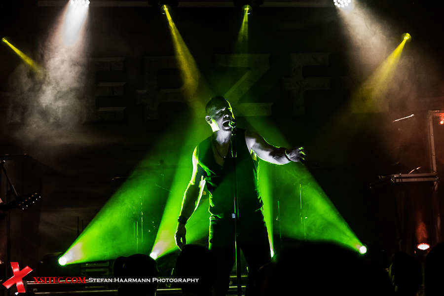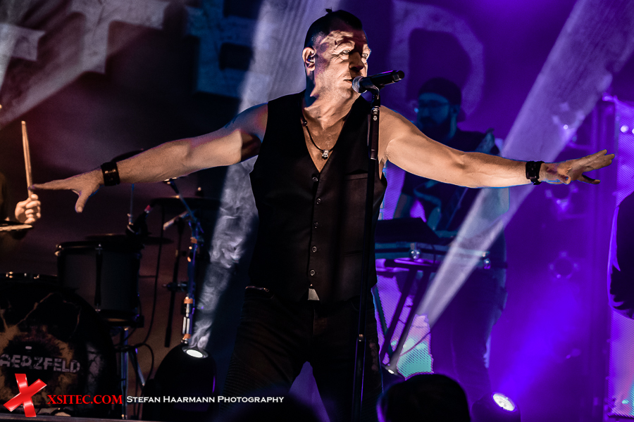Heli Reißenweber - ganz in Schwarz gekleidet - ist die Art von Frontmann, der nicht viele Worte braucht, um das Publikum in seinen Bann zu ziehen. Meistens genügt eine theatralische Pose und ein Blick seiner tiefblauen Augen. Nach „Maerzfeld“ und „Einer Wie Alle“ gibt es mit „Flammenhände“ einen weiteren Ohrwurm vom aktuellen Album, der auch visuell perfekt umgesetzt wird und Reißenweber in einem durch die Bühnenlichter kreierten Dreieck erstrahlen lässt.