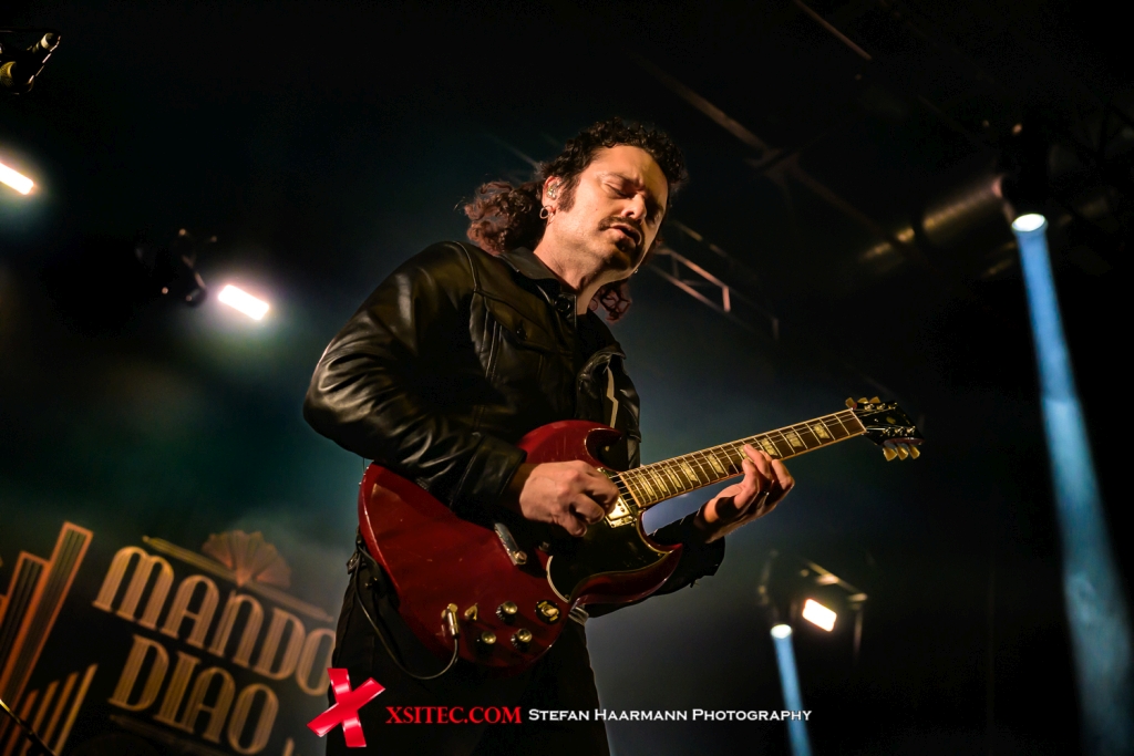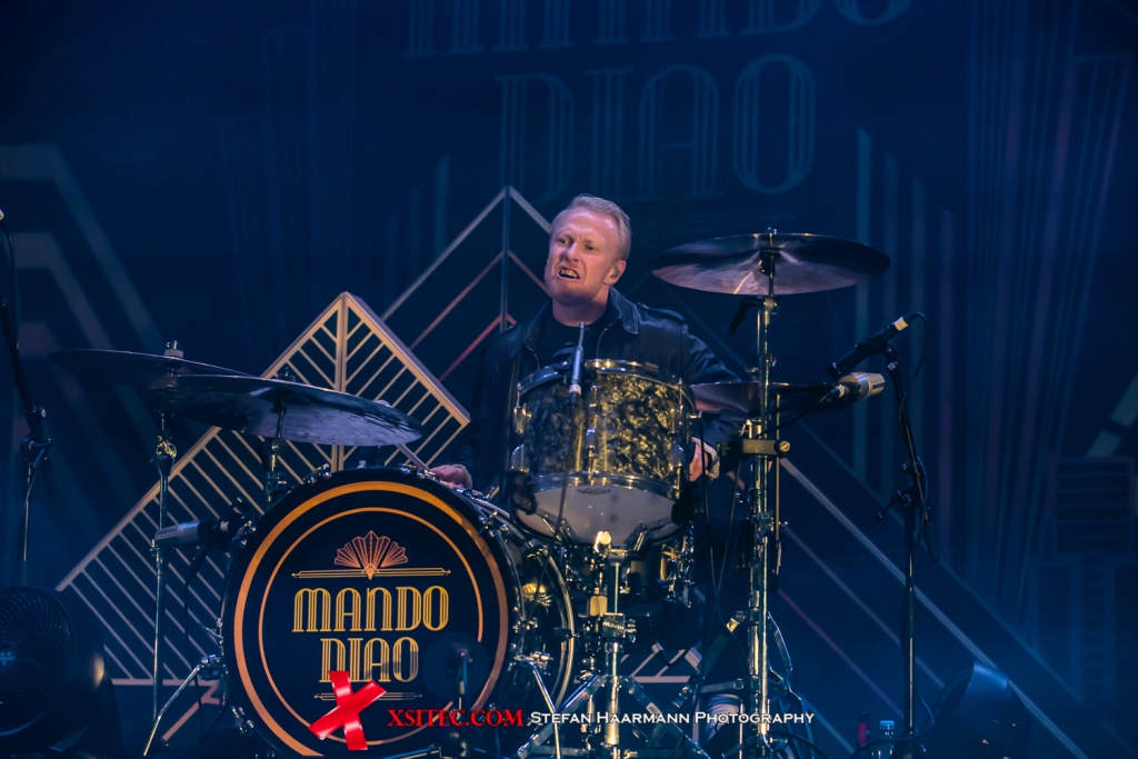 Der Umbau der Bühne geht nach dem Abgang der KILL STRINGS zügig von der Hand, die Deko für MANDO DIAO steht bereits und wird von Stage-Hands nur noch in den Fokus gewuchtet. Der erste Eintrag der Setlist kommt vom aktuellen Album. „Frustration“ zeigt die Band direkt hellwach, die Fans in der Halle ziehen begeistert mit und bereiten den Schweden einen herzlichen Empfang. Björn Dixgård betätigt sich ein ums andere Mal als Vortänzer, der sich mit Klampfe und Lederjacke scheinbar erst einmal austoben muss. „One Last Fire“ ist somit auch nicht der Abgesang der Band, sondern der Auftakt zu einem furiosen Spurt in Richtung „All The Things“ und „Money Doesn´t Make You A Man“, bevor mit „Ochrasy“, „Long Before Rock´n´Roll“ und „The Band“ der zweite Akt in Form eines Swing-Akustik-Sets ansteht, der gediegene Club-Atmosphäre schafft und das Palladium auf eine Reise zu den Anfängen der Band mitnimmt.