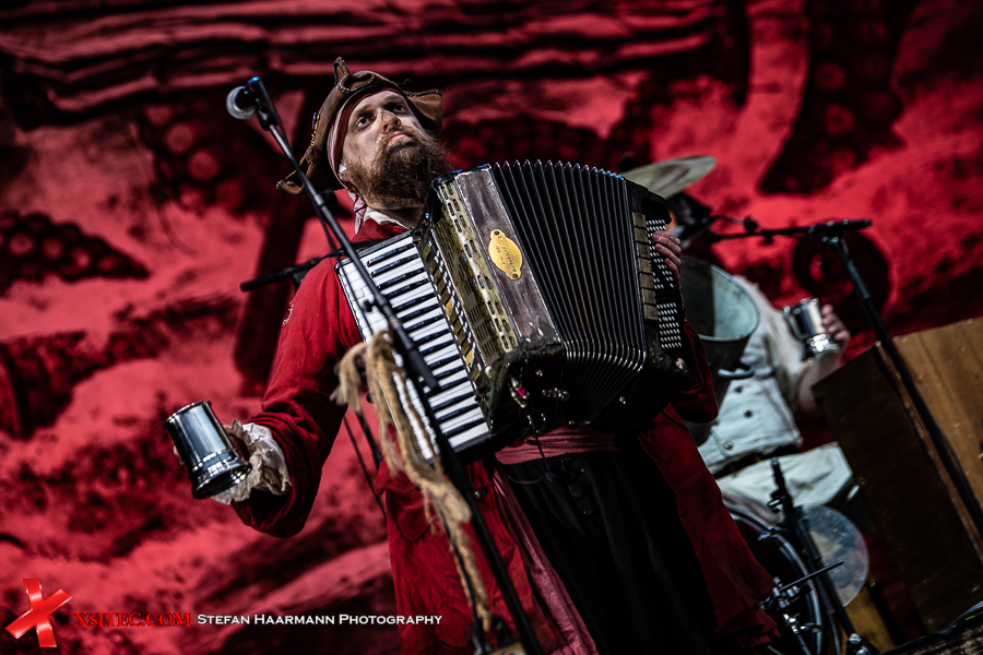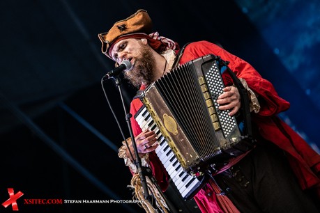 Überhaupt dominieren im Publikum die Piratenkostüme, die sich aufgrund des prächtigen Wetters und der glücklicherweise etwas gelockerten Ausstiegsbedingungen auch auf oder neben ihren Auto aufhalten dürfen, solange sich keine größeren Gruppen bilden. Chefpirat Mr. Hurley geht als erster an Deck, gefolgt von seiner Crew Pegleg Peggy (Bass), Buckteeth Bannock (Akkordeon), sowie dem einäugigen Morgan (Schlagzeug).