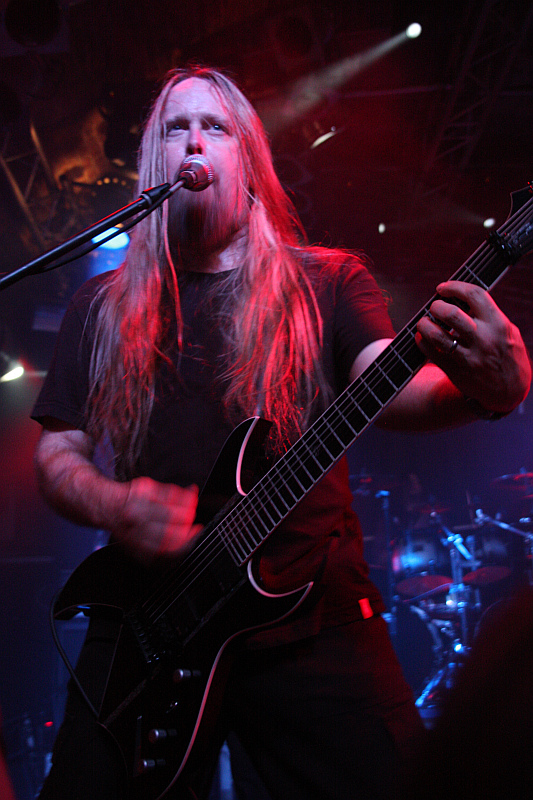 Die Matrix ist in Sachen Sound bekanntlich nicht gerade das Paradies für Akustikgourmets und auch an diesem Abend wird das Problem bei fast allen Bands mit extrem hoher Lautstärke so gut es eben geht kaschiert. So auch bei FORBIDDEN, deren erste Songs sind im Soundbrei kaum zu erkennen, erst ab "Twisted Into Form" an Position vier wird es langsam besser. Zuvor wird die Band von den Fans, die inzwischen gut die Hälfte der Halle füllen, euphorisch begrüsst. Mitgebracht haben die Bay Area Thrasher mit Gene Hoglan an den Drums einen besonders hochkarätigen Gast, der ein sattes Rhythmusfundament legt. Die beiden Gitarristen Craig Locicero und Steve Smyth zocken die Songs mit beeindruckender Tightness, lediglich der schwergewichtige Frontmann Russ Anderson hat nicht seinen allerbesten Tag erwischt und wirkt manchmal etwas aus der Puste. Vom aktuellen Album "Omega Wave" werden "Forsaken At The Gates", "Overthrow" "Dragging My Casket" und der Titeltrack en bloc geboten, ansonsten reiht sich ein Bandklassiker an den anderen. "March Into Fire" eröffnet den bunten Reigen, "Step By Step" und "Off The Edge" folgen. "R.I.P." wird dem kürzlich von uns gegangenen Matt LaPorte gewidmet. Zum Ende des Gigs hat sich das Publikum dann zwar schon deutlich gelichtet (was vermutlich auch an der Happy Hour mit preiswertem Fassbier bis 19 Uhr liegt), doch mit "Infinite", "Through Eyes Of Glass" und "Chalice Of Blood" setzen FORBIDDEN dem guten Auftritt das Krönchen auf.Es bleibt abzuwarten, ob es noch einen dritten Teil von Metropole Ruhr geben wird, denn die Probleme, die man bei der diesjährigen Organisation hatte, werden angesichts der Tatsache, dass man selbst die Matrix nur zur Hälfte füllen kann, sicher nicht weniger werden. Wäre schade um die schöne Idee.