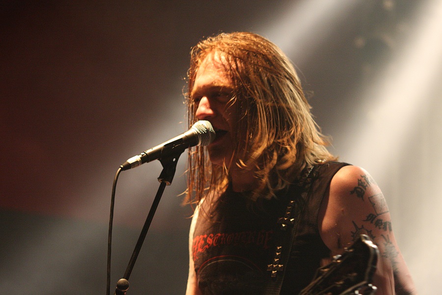 Die Band um Rotweintrinker Blake Judd war als Trio angereist, was vermutlich auch ein Grund für die höchst überraschende musikalische Darbietung war. Denn wo auf den letzten Alben eine sehr deutliche psychedelische Schlagseite viel Raum im Sound der Band eingenommen hat, war davon an diesem Abend rein gar nichts zu sehen bzw. zu hören. Stattdessen gab es ausnahmslos knüppelharte Songs, die richtig derbe ins gut abgehende Publikum gedroschen wurden. "Your True Enemy", "Chosen By No One", "Life Of Fire", "Hellish Overdose", "Ghosts Of Grace" und als Zugaben das brandneue "High On Hate" sowie "Assassins" - das dürfte es auch schon gewesen sein. Da hatte ich mir deutlich mehr erhofft und nicht wirklich erwartet, dass der Abend schon um 22.20 Uhr beendet sein würde. Dafür machte Blake jede Menge Ansagen, natürlich zum tragischen Tod seines Idol Peter Steele, aber auch zu den unhaltbaren Nazi-Vorwürfen von Seiten der Antifa, die wohl schon mal dafür gesorgten hatten, dass NACHTMYSTIUM nicht in Deutschland aufgetreten sind. "We are no nazis, we do not hate anyone more than we hate everyone here in this place." Deutliche Worte also. Besonders viel Lob verteilte der Frontmann an KETZER, die er als beste Band bezeichnete, mit denen er je auf Tour gewesen sei. In Amerika gäbe es ja nur Schrott-Thrashbands wie MUNICIPAL WASTE, da sollten wir hier echt froh sein, Bands wie KETZER zu haben. Sind wir auch, ebenso wie es schön war, NACHTMYSTIUM endlich mal auf der Bühne zu sehen - auch wenn der Auftritt viel zu kurz und zu sehr auf harte Songs ausgerichtet war.