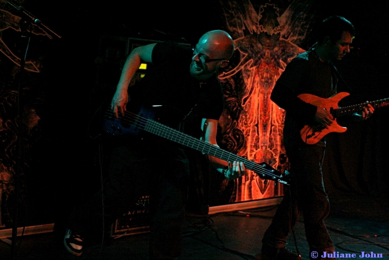 Ein nicht geringer Teil des Publikums ist sicherlich auch wegen CYNIC in die Markthalle gepilgert. In zwanzig Jahren Bandgeschichte hat es diese Band auf gerade mal zwei Studioalben gebracht, wobei Album Nummer zwei erst anno 2008 nach der von vielen herbeigesehnten Reunion der Florida-Jungs erschien. Trotz mangelnder Produktivität haben CYNIC einen legendären Status in der Szene erlangt, auch wenn ihr aktuelles Werk „Traced In Air“ den Death-Metal-Wurzeln ein wenig den Rücken zugekehrt hat. Rhythmisch komplex und mit krummen Takten vor wunderschönen Melodien strotzend, ergießt sich der Sound dieser vier Wundermänner ins Publikum, während sich Paul Masvidals fremdartiger, verfremdeter Klargesang, begleitet von heiseren Growls, wie Balsam über das polyrhythmische Brodeln der Instrumente legt. Ein wunderbarer Auftritt einer wunderbaren Band!