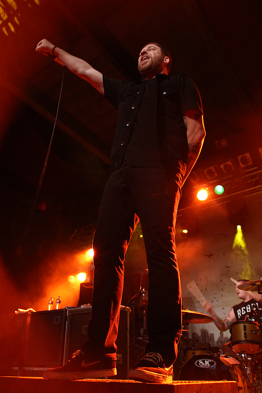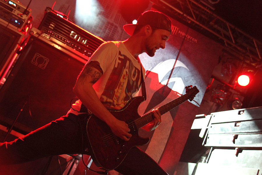 I KILLED THE PROM QUEEN werden von PARKWAY DRIVE als wichtiger Einfluss genannt und stehen als nächstes auf der Bühne. Nach einer längeren Pause hat die Band sich 2011 neu formiert und im Februar diesen Jahres ihr Comeback-Album veröffentlicht. Musikalisch agieren die Australier abwechslungsreicher als BREAKDOWN OF I Killed The Prom QueenSANITY, ihr Sound ist einerseits melodischer (besonders die Backing Vocals überzeugen live), andererseits aber auch etwas sperriger, die dezente Sludge-Note in ein paar der sieben gespielten Stücke weiß ebenfalls zu überzeugen. Optisch machen der bärtige, ausgiebige tätowierte Gitarrist und der nicht weniger bunte Bassist einiges her, während Sänger Jamie Hope mit umgedrehtem Cap ein Standard-Outfit präsentiert. Auch I KILLED THE PROM QUEEN machen bewegungstechnisch viel Alarm, springen, bangen und biegen sich, was das Zeug hält. Insgesamt eine ziemlich ordentliche Performance.