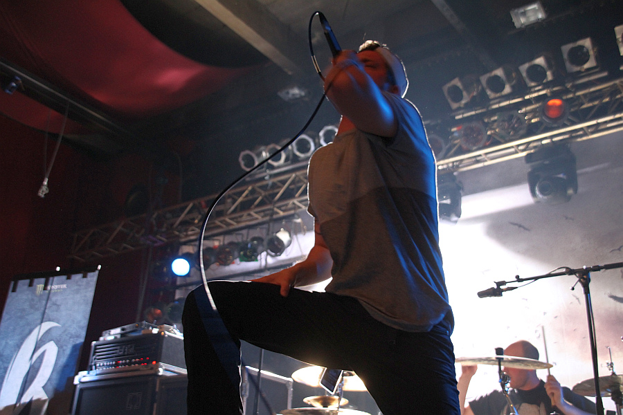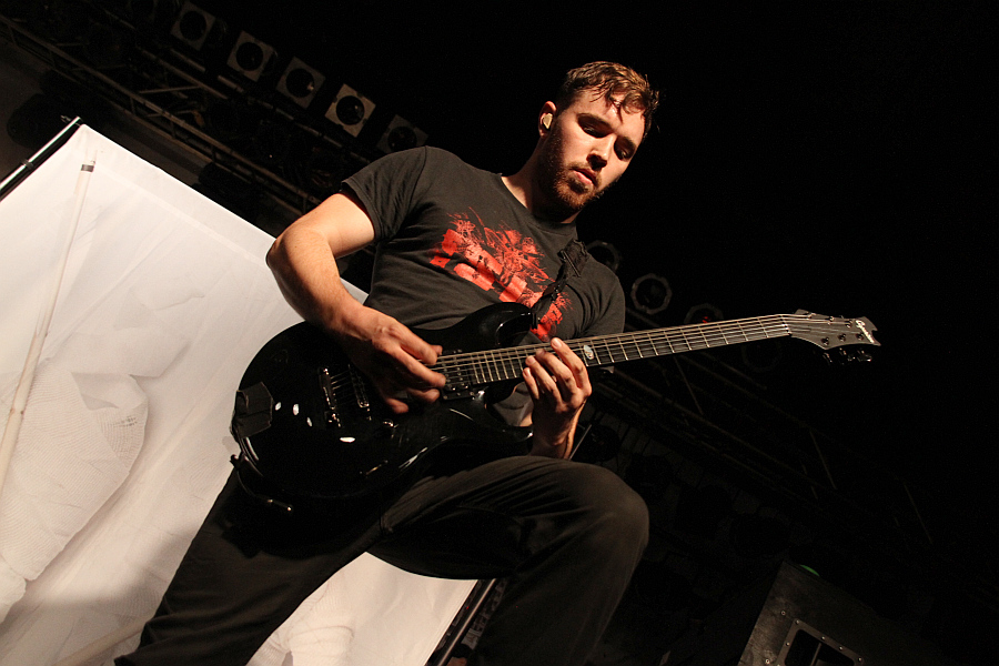 Breakdown Of SanityDass ich die Szene nur am Rande verfolge, wird auch daran deutlich, dass mir die erste Band des Abends völlig unbekannt ist. BREAKDOWN OF SANITY aus der Schweiz, die auch schon beim erwähnten Impericon Festival gespielt haben, eröffnen das Gehüpfe und sorgen zu meinem Erstaunen von Anfang an für Begeisterung. Anscheinend ist die Band gar nicht so ein kleines Licht, wie die Position im Billing vermuten lässt und die Tatsache, dass die Band von ihrem aktuellen Album "Perception" bereits 20.000 Einheiten verkauft hat, belegt dies. Das nicht ganz so geschulte Ohr vernimmt "traditionellen" Metalcore mit gelegentlichen Deathcore-Einschüben und die Band agiert höchst aktiv auf der Bühne. Das Publikum wird mit ordentlichem Erfolg angestachelt und nach sieben Songs gibt es sogar einige "Zugabe"-Rufe. Not my cup of tea, wie es so schön heißt, aber angesichts der positiven Reaktionen aus dem Publikum muss man die Band zumindest Genreanhängern empfehlen.