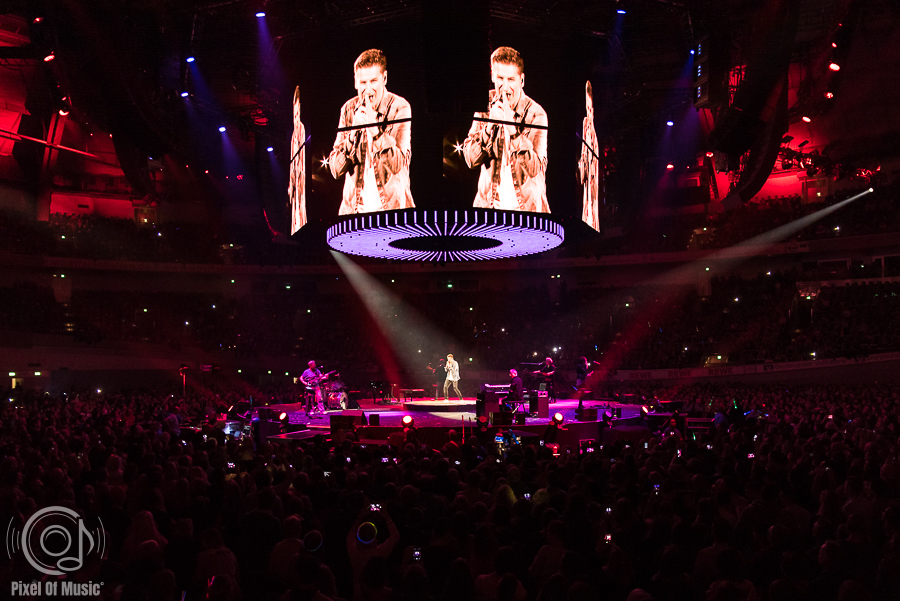 Die Bühne war, abseits der üblichen Konstruktion, als runde Bühne mitten in der Westfalenhalle aufgebaut. Nicht wirklich eine neue Idee, aber immer wieder gerne genommen, da die Distanz zu den Fans auf diese Art verkleinert wird und sich jeder mittendrin fühlt. Darüber trohnte eine ebenfalls fast runde Beleuchtungsbrücke mit rundum vorgesetzten Großbildschirmen, die es auch den Zuschauern im Oberrang ermöglichten von allen Seiten ihre Lieblingsband aus der Nähe zu sehen.