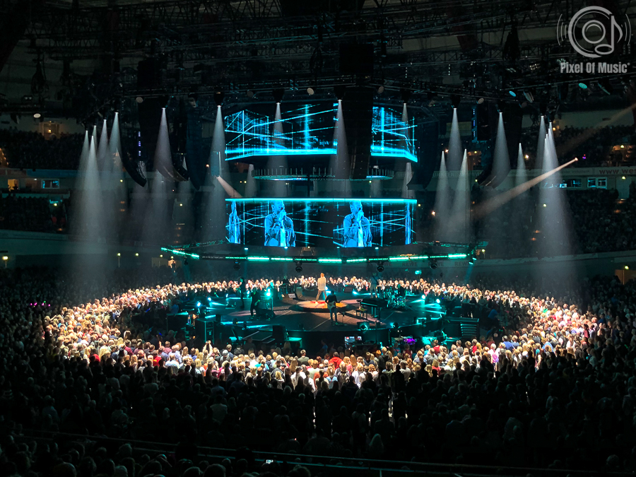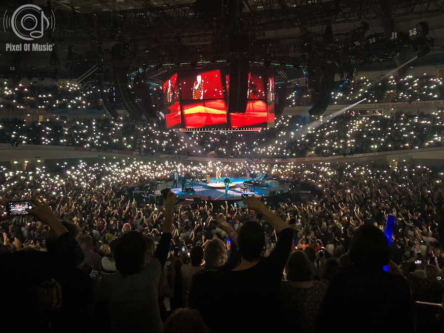 Zu diesem Zeitpunkt hatte sich die Westfalenhalle bereits beachtlich gefüllt. Wo am Vorabend noch 5000 Techno-Fans tanzen konnten, war nun gerade mal noch Platz um einigermaßen bequem zu stehen. Die Dortmunder Veranstaltungshalle war nach Auskunft eines lokalen Mitarbeiters mit ca. 14.000 Besuchern restlos ausverkauft. Obwohl ich noch einige frei Plätze in Rang und Oberrang ausmachen konnte. Was der Techno-Act am Vortag nicht geschafft hatte, haben Pur sogar gleich an zwei aufeinander folgenden Tagen gemacht. Nämlich die Westfalenhalle gefüllt. Die Fan-Base des musikalischen Märchenerzählers, Hartmut Engler, ist eine absolute Bank. Von gefühlten 10 bis ca. 70 Jahren war auf diesem Event so ziemlich jedes Alter vertreten. Aber schließlich hat die Band es in ihrer über 40-jährigen Geschichte auch auf sieben No. 1-Alben und knapp sieben Mio. verkaufte Tonträger gebracht. Sowas schafft Fans!